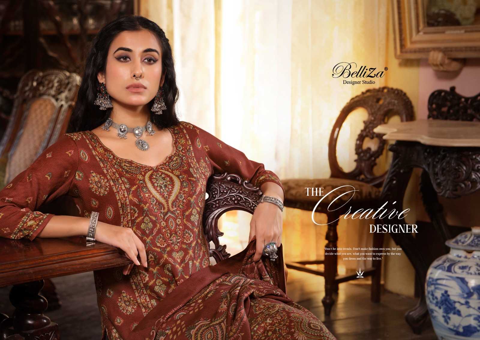 belliza designer cashmera kaani alpine wool winter wear beautiful dress material