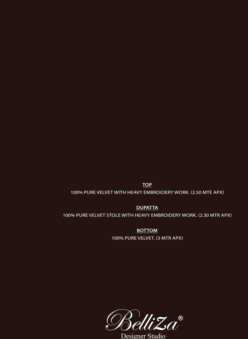 PURE VELVET BOTTOM ......BelliZa DesigNer StuDio...... presents "RANG REZA" 🔺Dupatta: 100% PURE VELVET with HEAVY KASHMIRI EMBROIDERY (2.30 mtrs apx) 🔺Bottom: 100% PURE VELVET (3 mtrs apx) 🔺Pcs: 06 🔺 Rate: 1495/- |