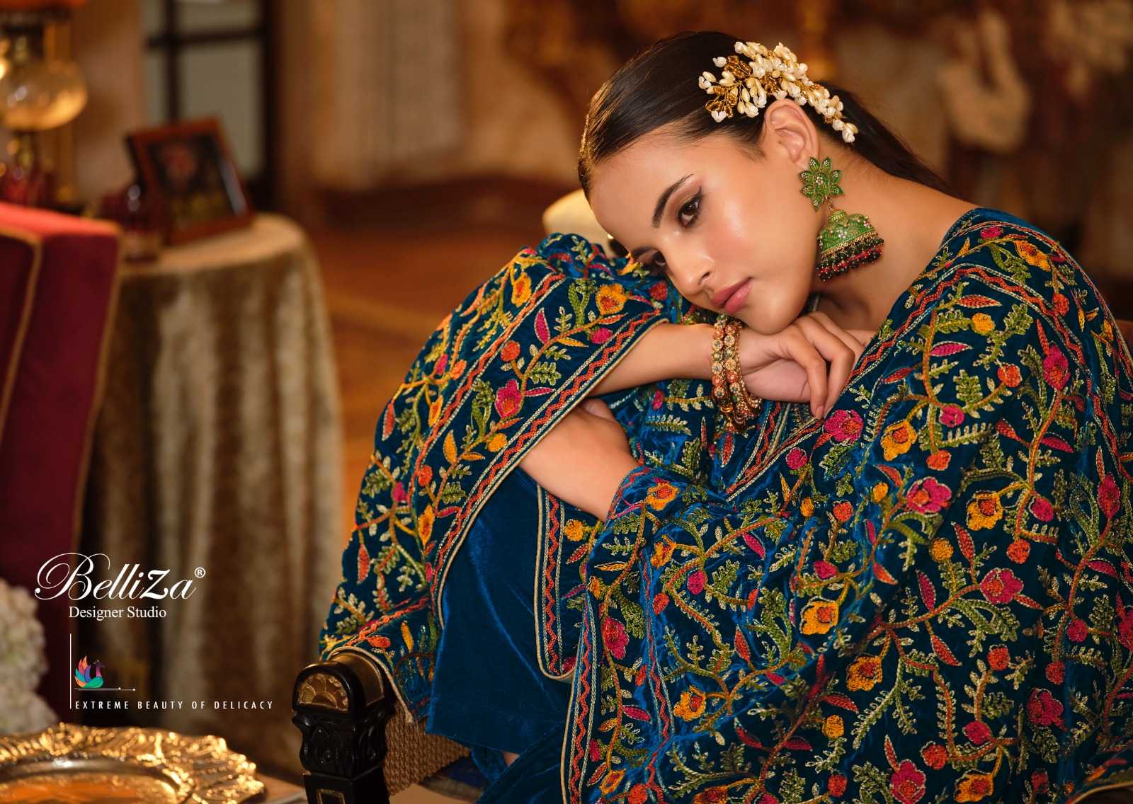 belliza designer rang reza velvet winter wear salwar kameez kashmiri embroidery work