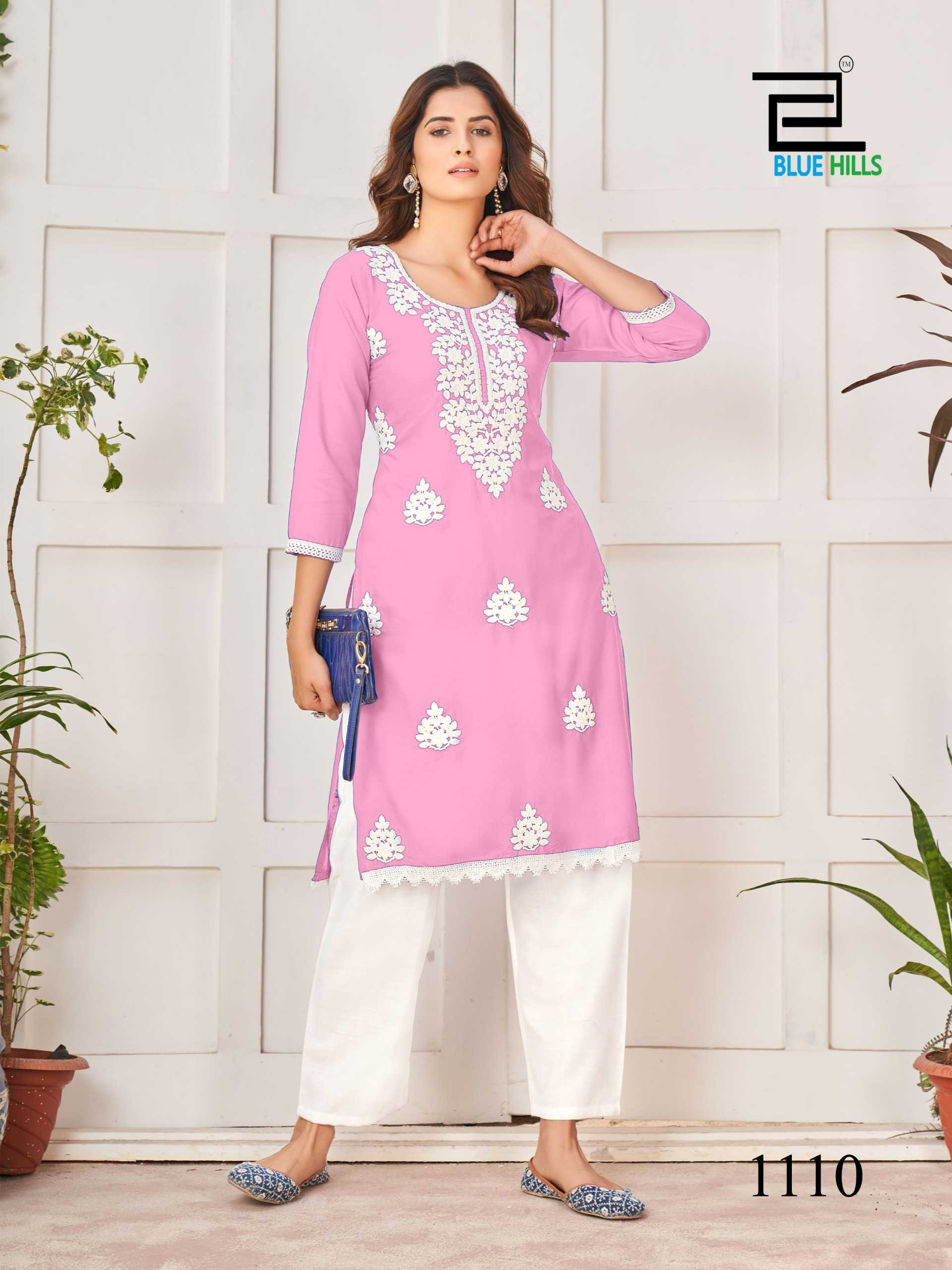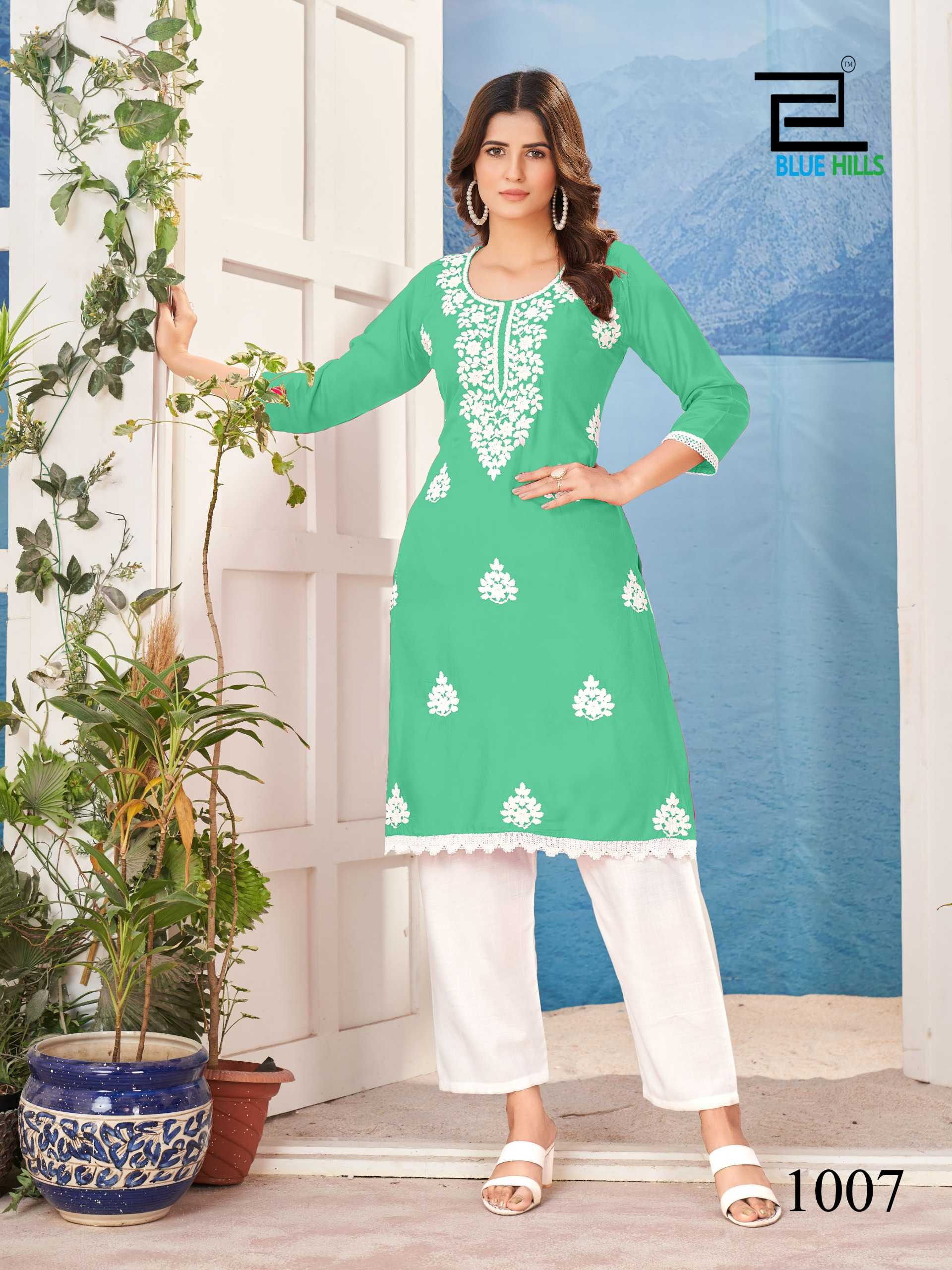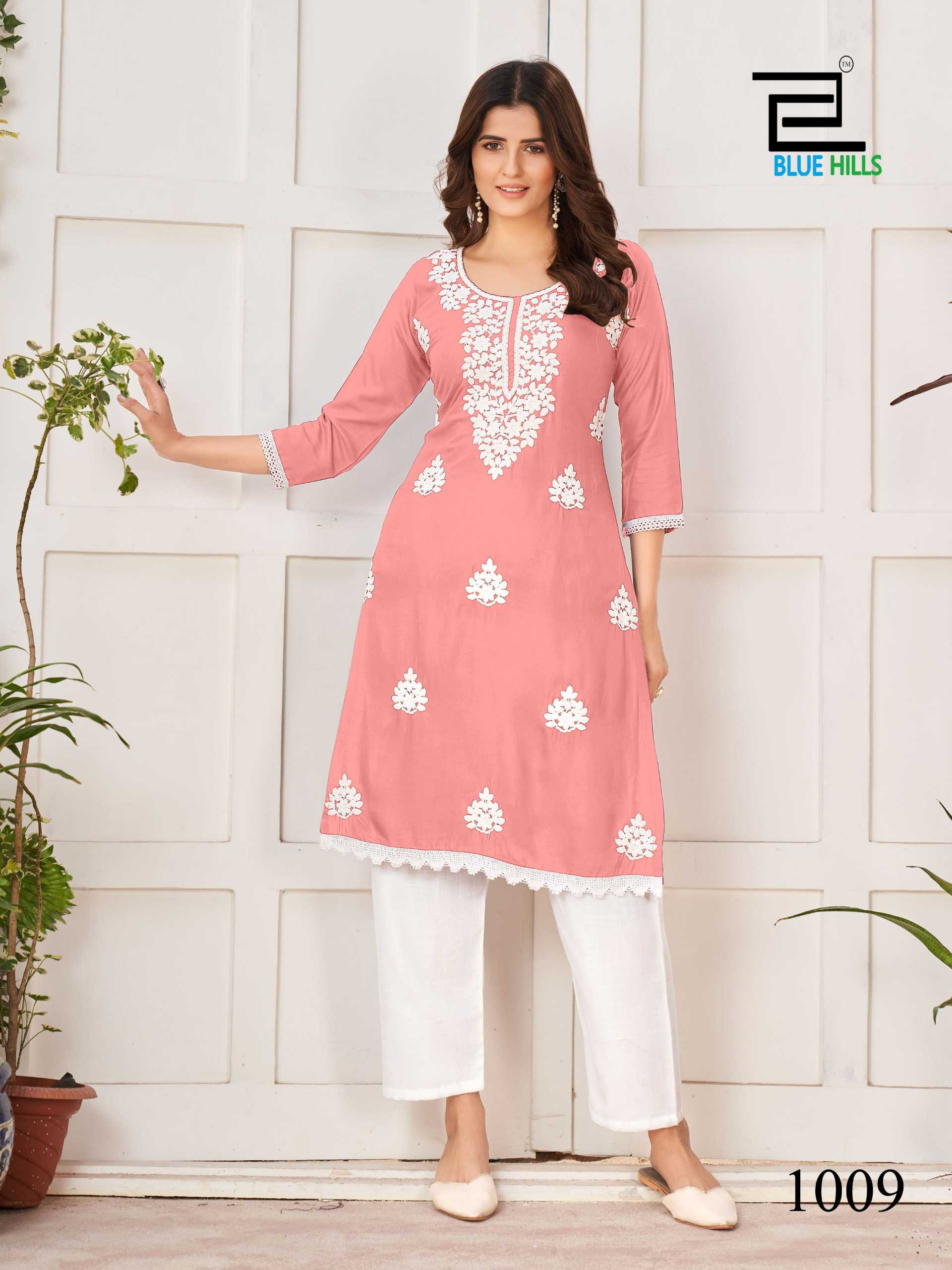 blue hills nawab pro stitched fancy Lucknawi work kurti