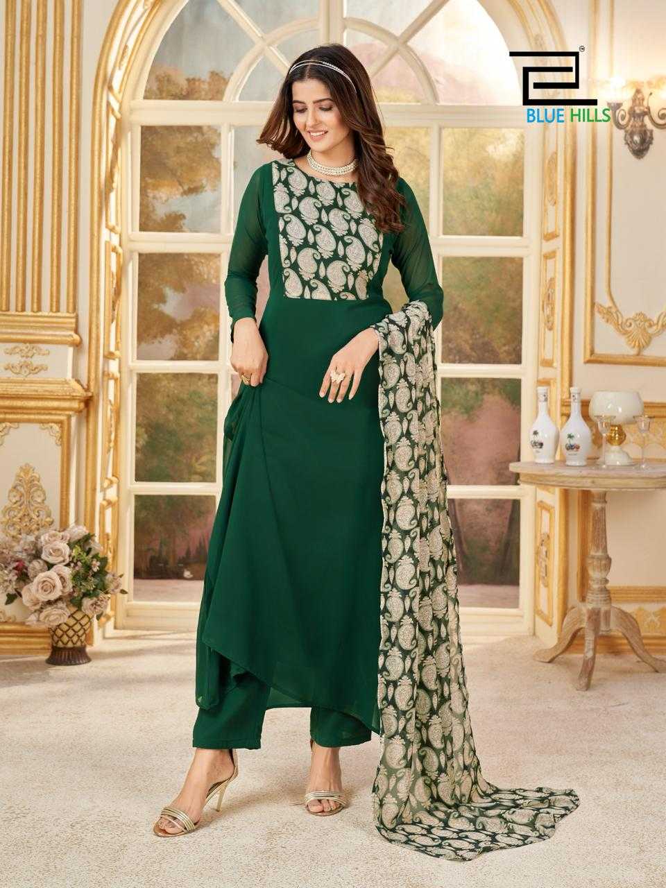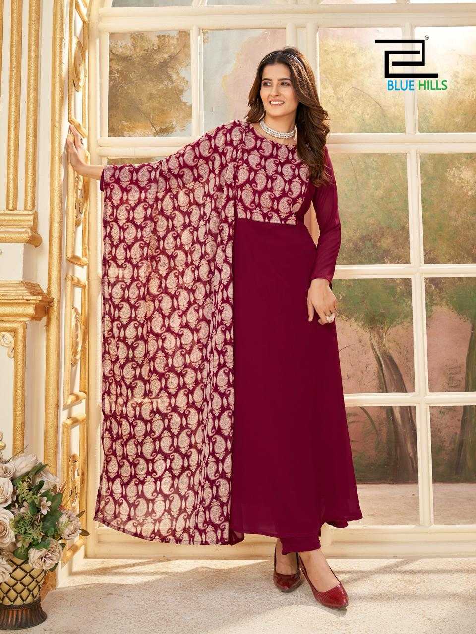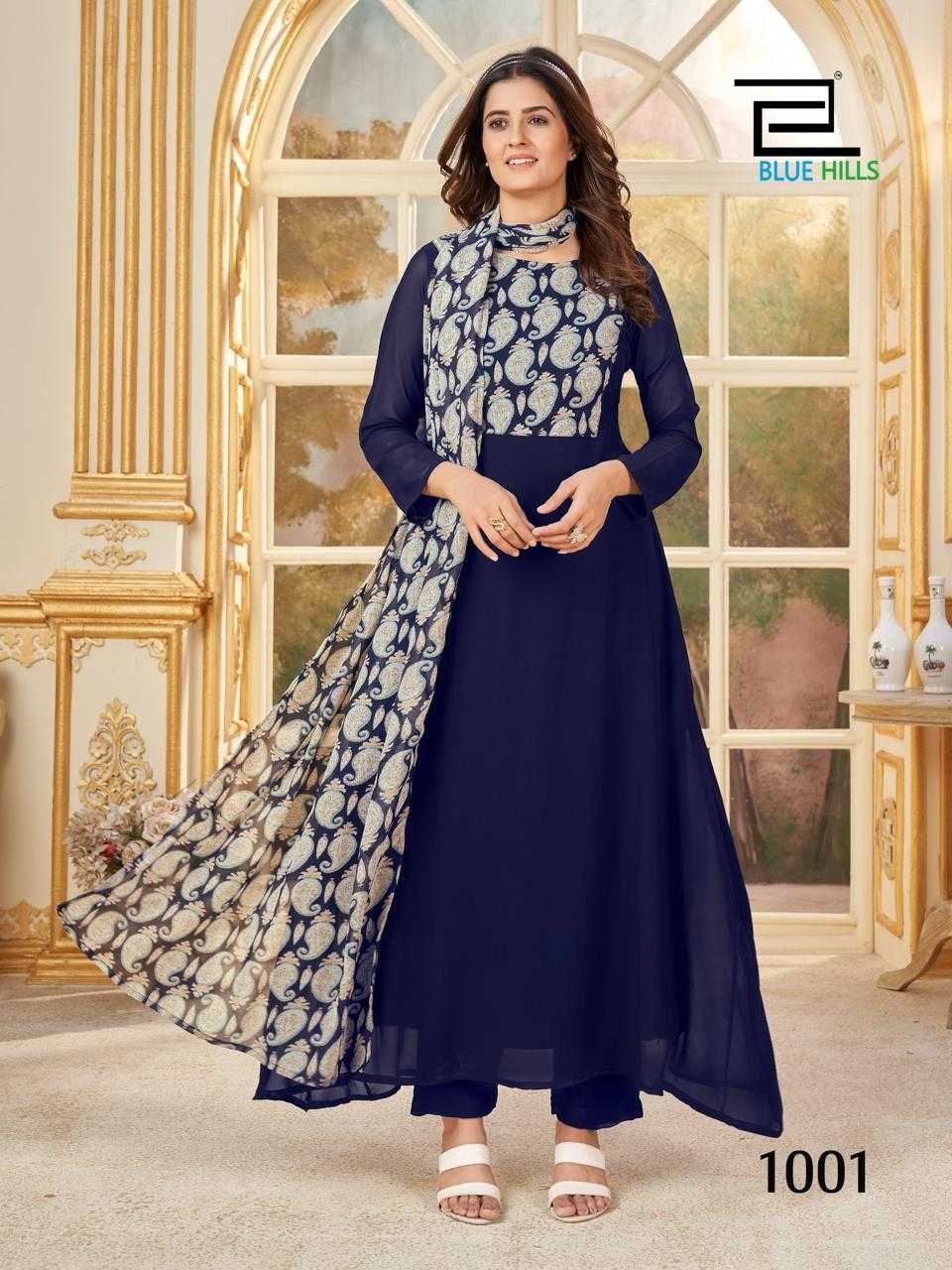 blue hills nithya readymade georgette printed kurti pant dupatta