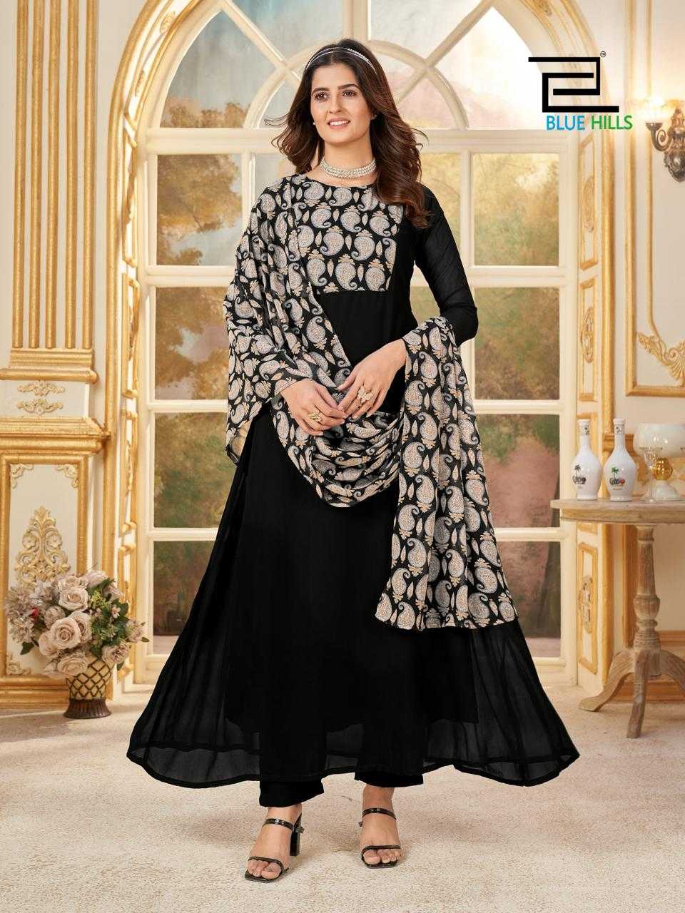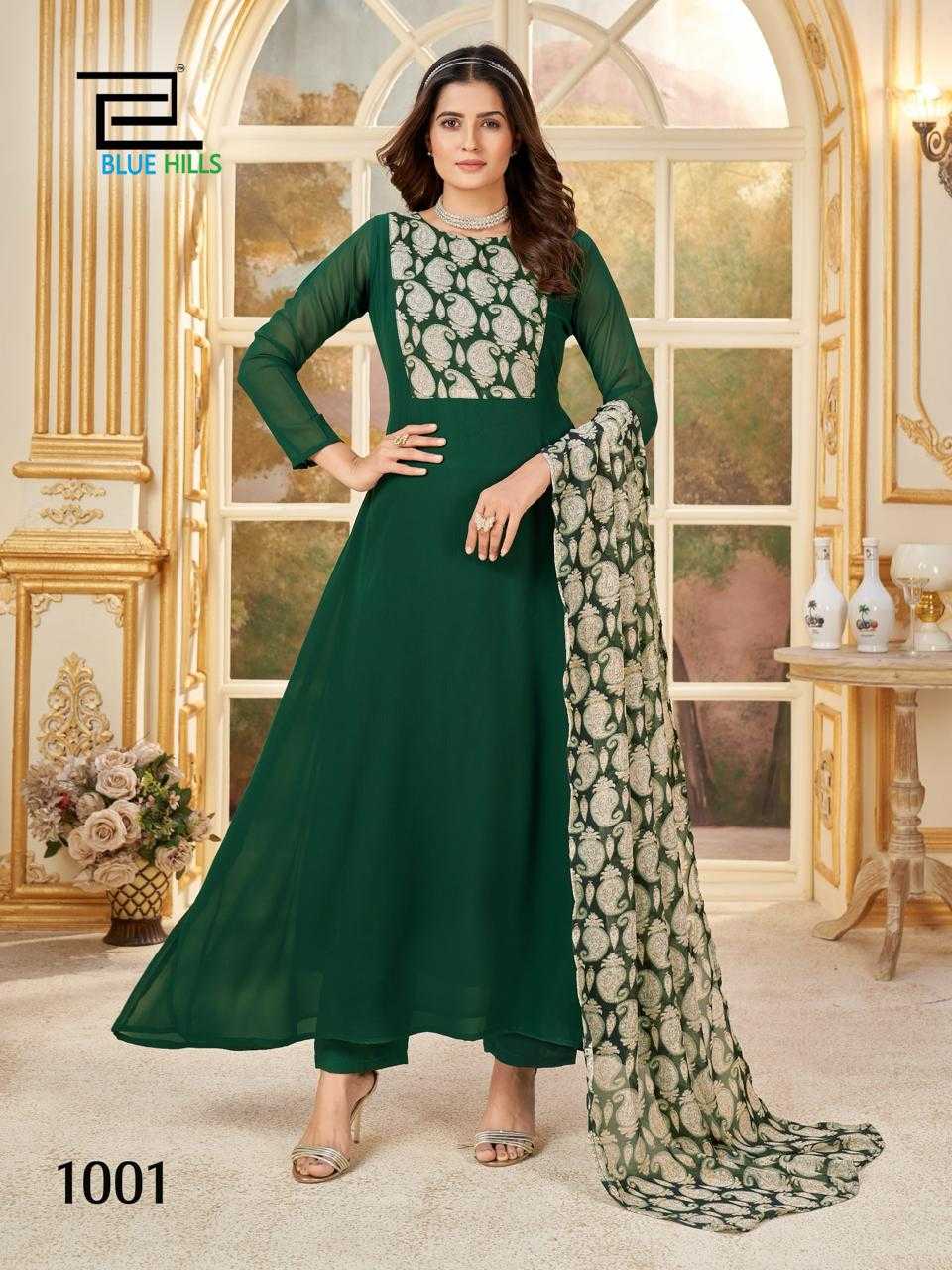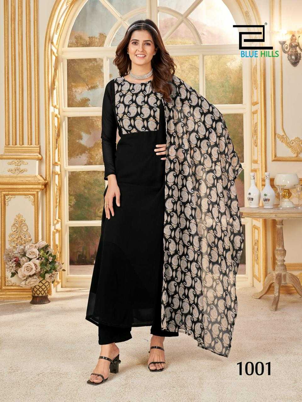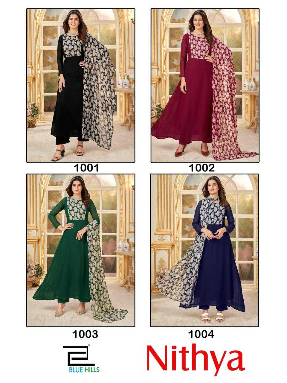 blue hills nithya readymade georgette printed kurti pant dupatta