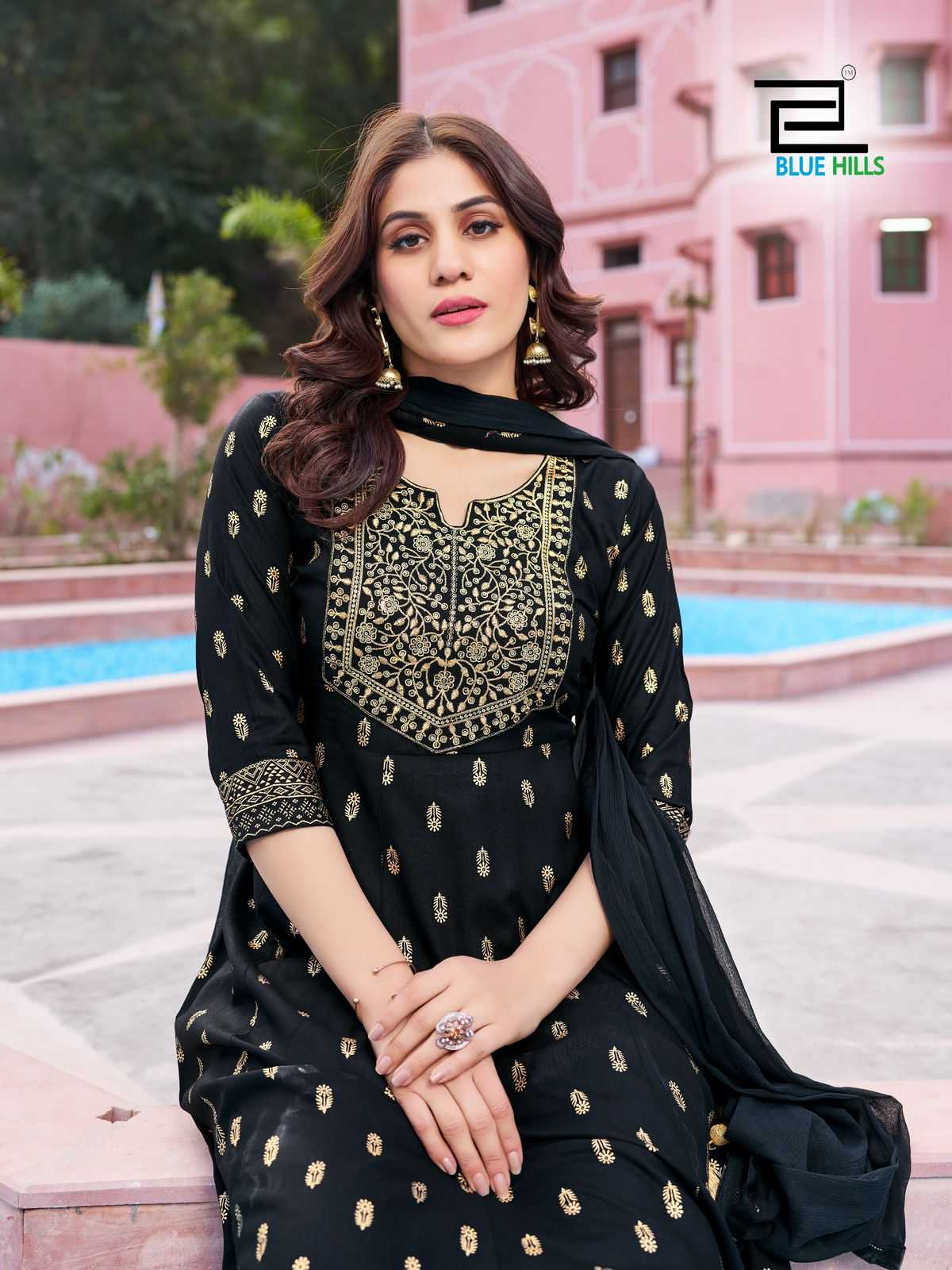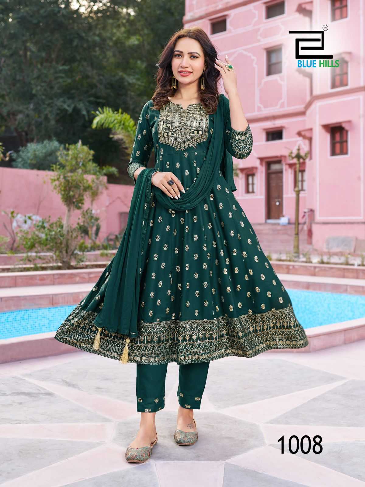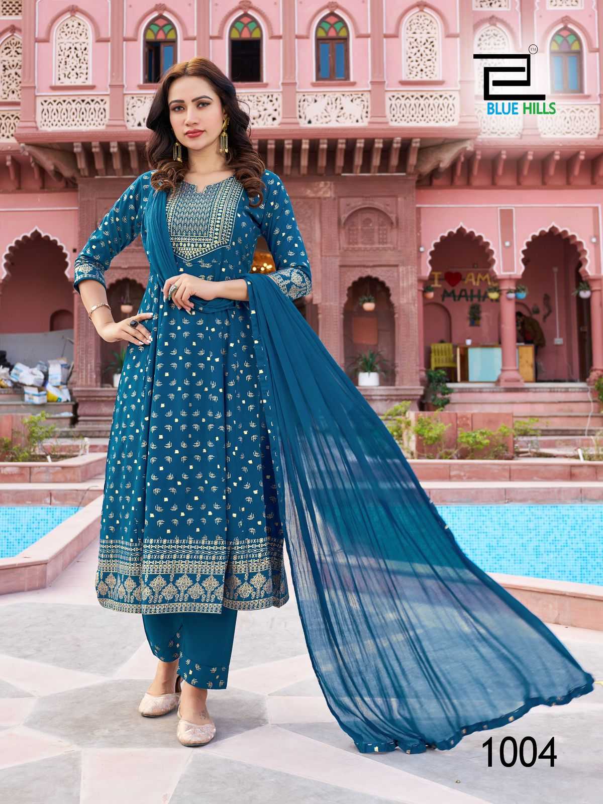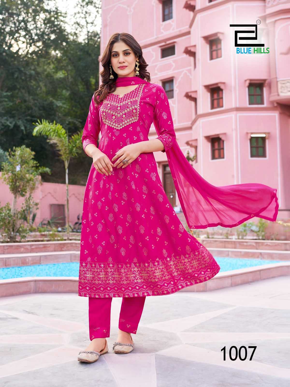 blue hills shreya fullstitch festive wear kurti pant dupatta in big sizes