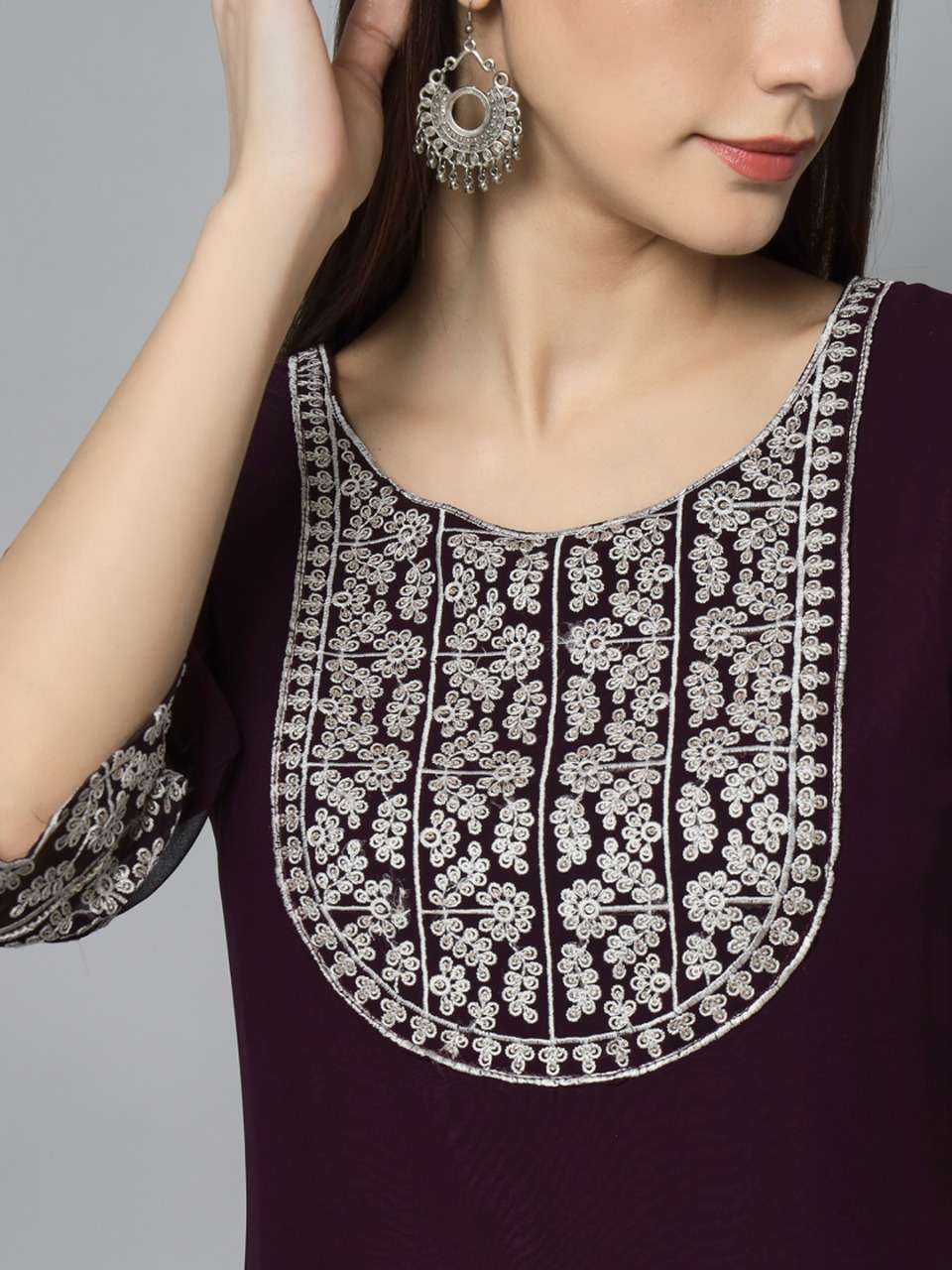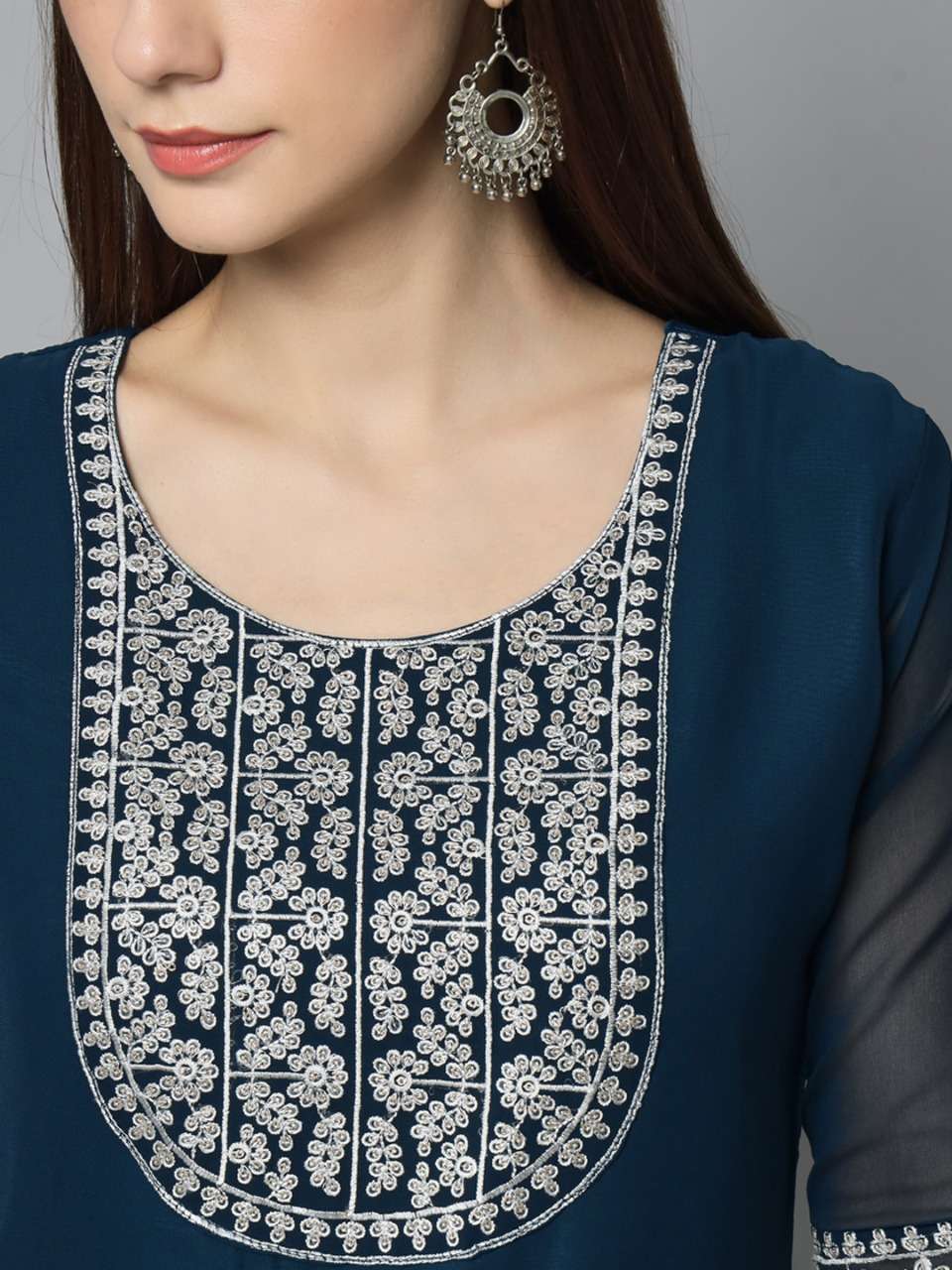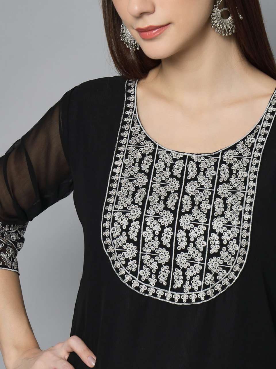 Brahmastra 1 Georgette Embroidery Kurti . Ready to wear Kurti..Silver Sequence Embroidery
