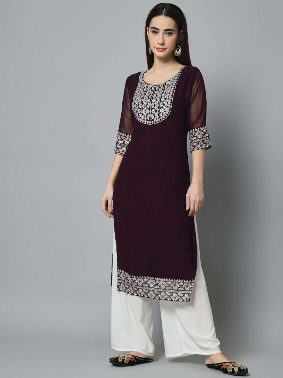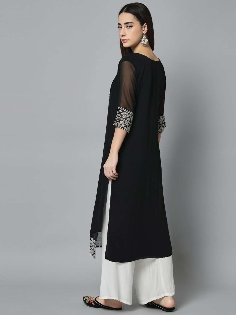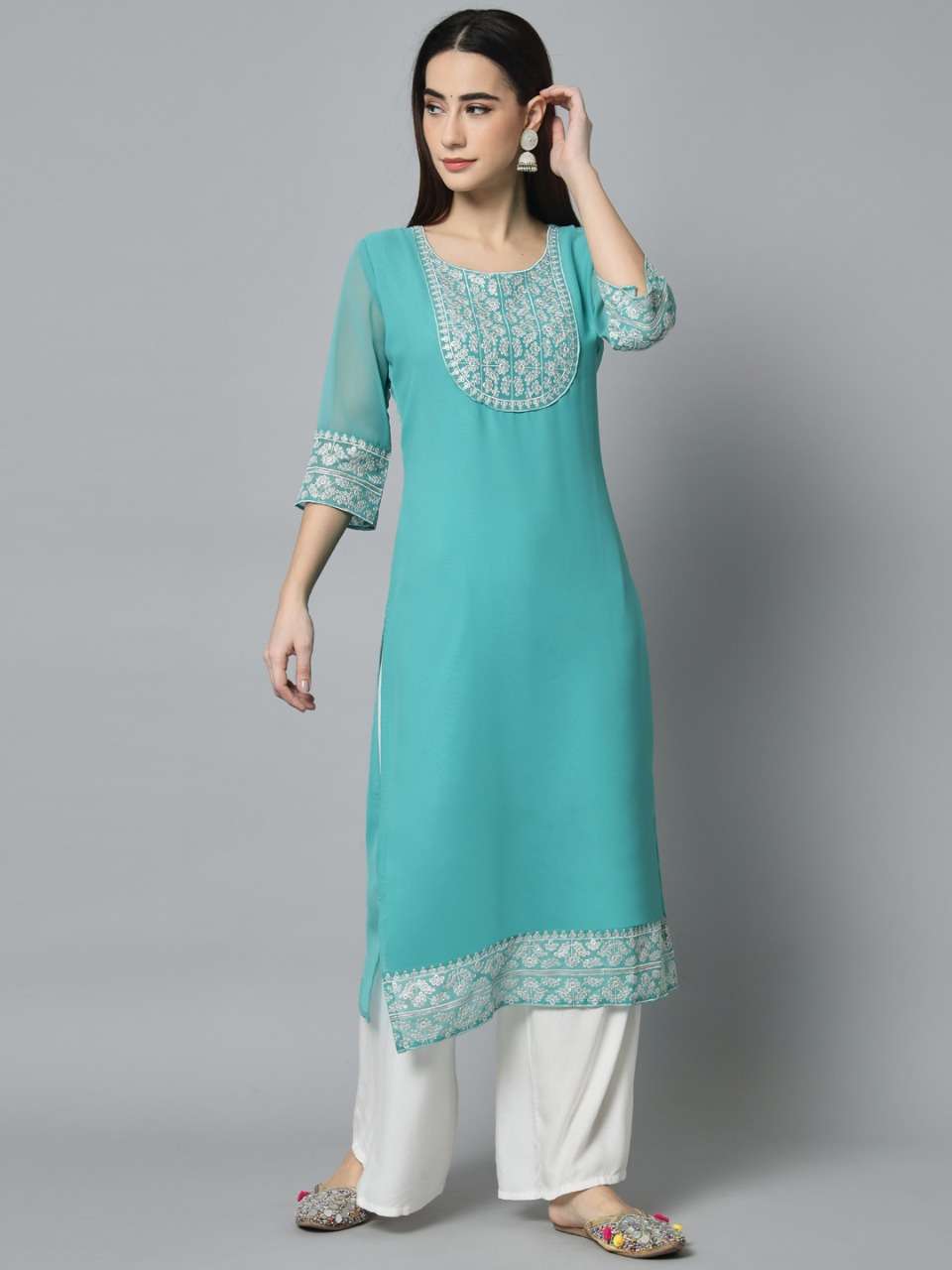 Brahmastra 1 Georgette Embroidery Kurti . Ready to wear Kurti..Silver Sequence Embroidery