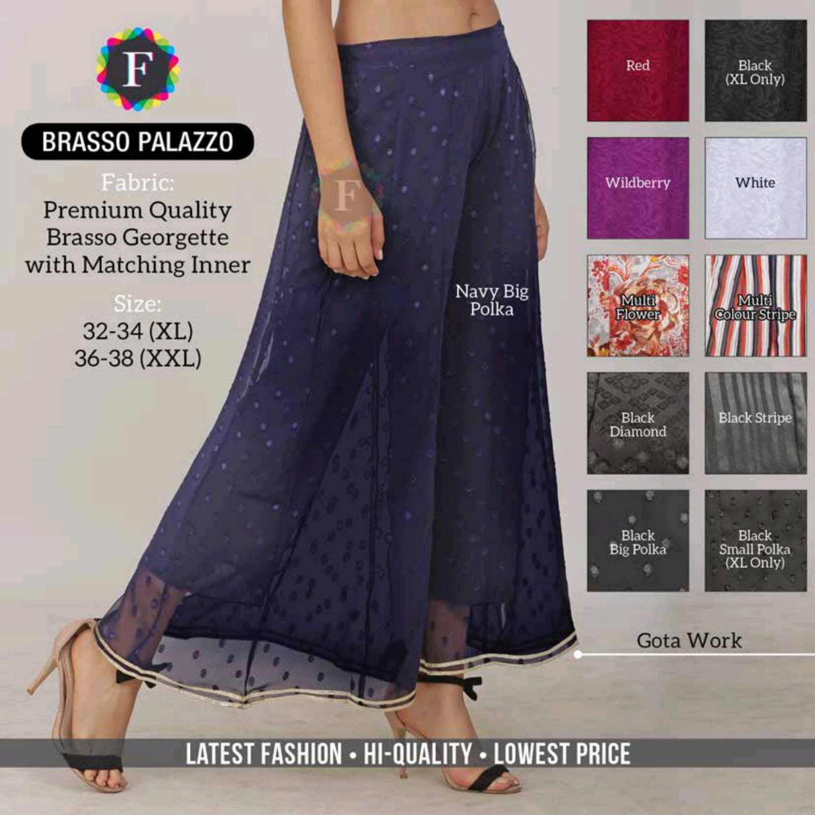 All Season Special PALAAZO – BOTTOM WEAR COLLECTION Fabric: Cotton Silk, Cotton Linen, Brasso, Georgette Etc Style: Ethnic & Western USP: Palazzo Size: XL XXL Price @ ASK ON WHATS APP GST 5% EXTRA Happy Selling ♦♦♦♦♦♦♦♦♦♦ |