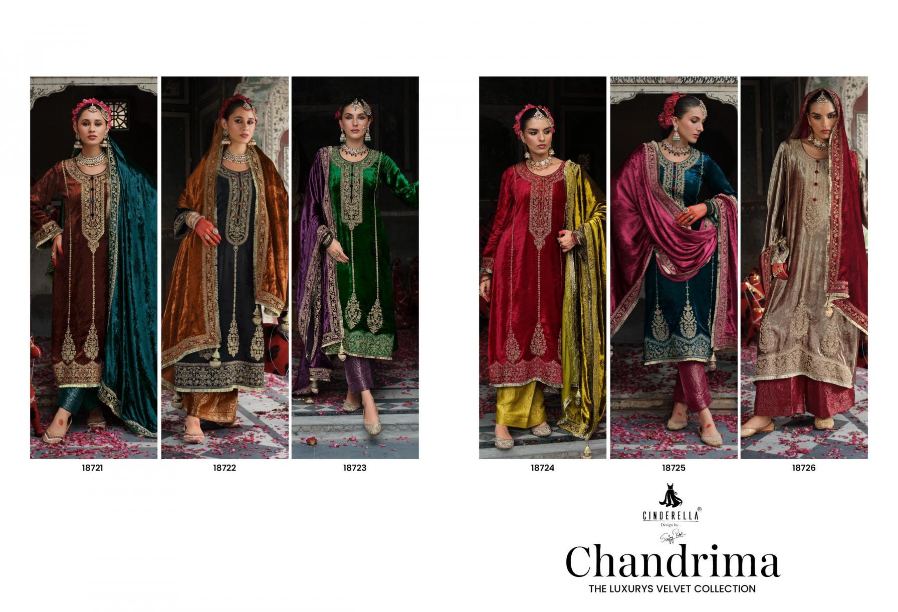 🙏🙏 CINDERELLA🙏🙏 NEW SERIES CHANDRIMA PREMIUM VELVET 👊Fabric Details👊 👗Top:-PURE VISCOSE VELVET EMBROIDERY WORK BOTTOM:-PURE PASHMINA JACQUARD 🔻Designs:- 6 PCS Rate: -2790
