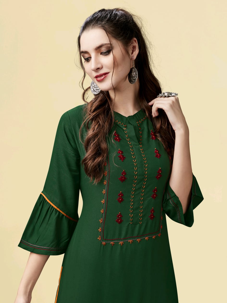 Channel 9 Present Nirvana Rayon With Contrast Kurti With Bottom Set