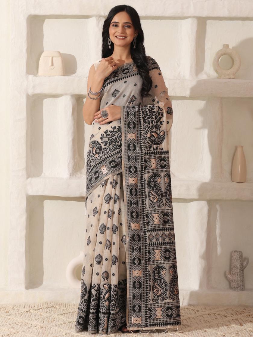 CHARCOAL CHARM by Astita fancy designer linen Cotton fabric saree wholesale with latkan