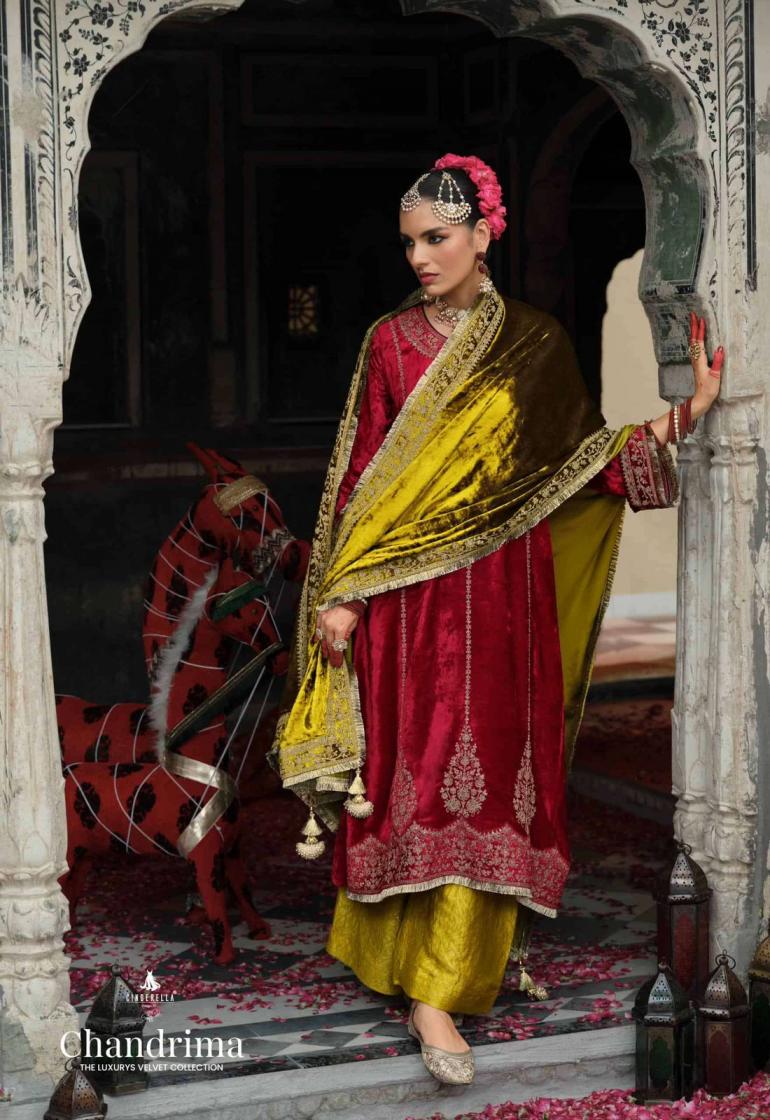 cinderella chandrima viscose velvet winter readymade designer 3pcs dress