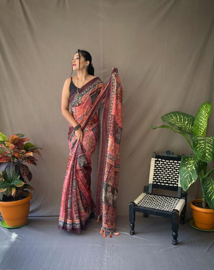 ck 3 shop trendy malai cotton kalamkari printed sarees