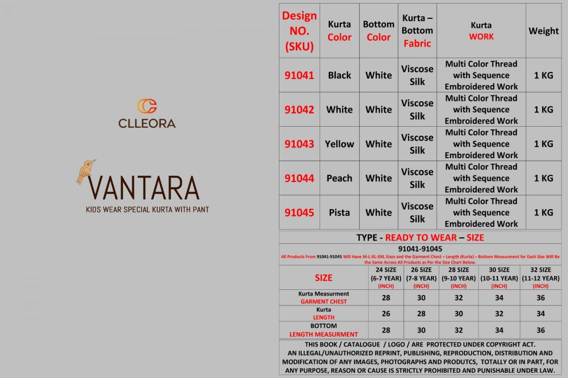 🧍 CLLEORA - NEW KIDS SPECIAL COLLOCTION 2025 🧍 💸 VANTARA • RATE LIST (KURTA + PANT (BOTTOM) 💸 91041: 999/- KIDS SIZE : ⚠️🧿 WE MANUFACTURE KIDS WEAR IN SIZES 24 TO 32 (6 YEAR TO 12 YEAR). WE HAVE ALREADY PROVIDED THE PROPER SIZE DETAILS IN THE DESCRIPTION FOR YOUR REFERENCE. PLEASE CHECK THEM BEFORE PLACING YOUR ORDER. ⚠️🧿 Weight: 1 KG Real Pic Available. ✅ 🧽 Wash & Care Instructions. 🧽 |