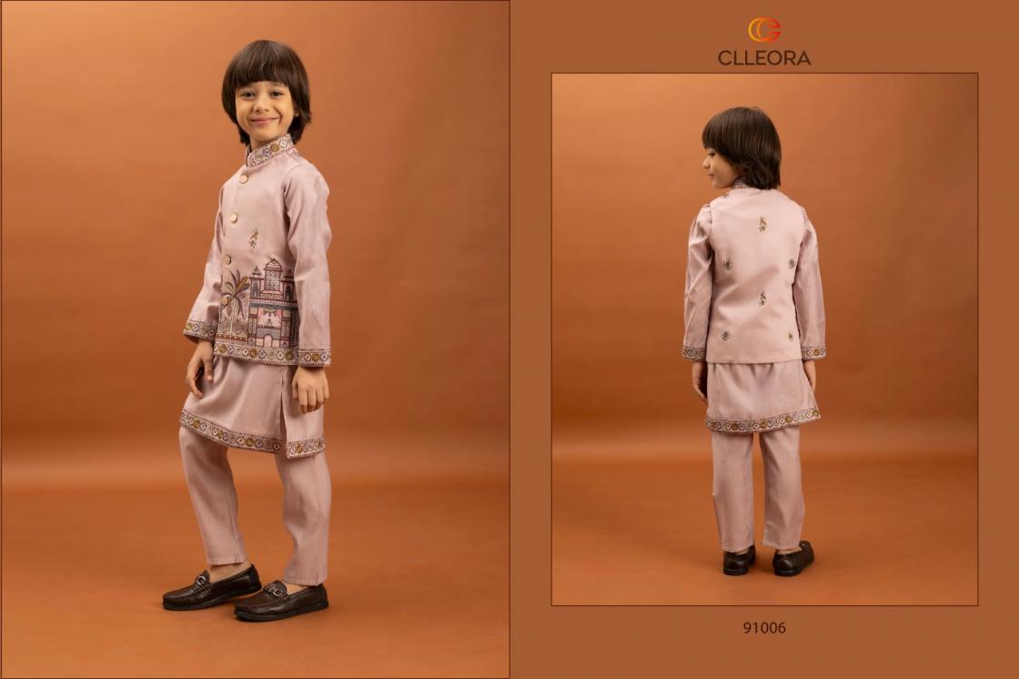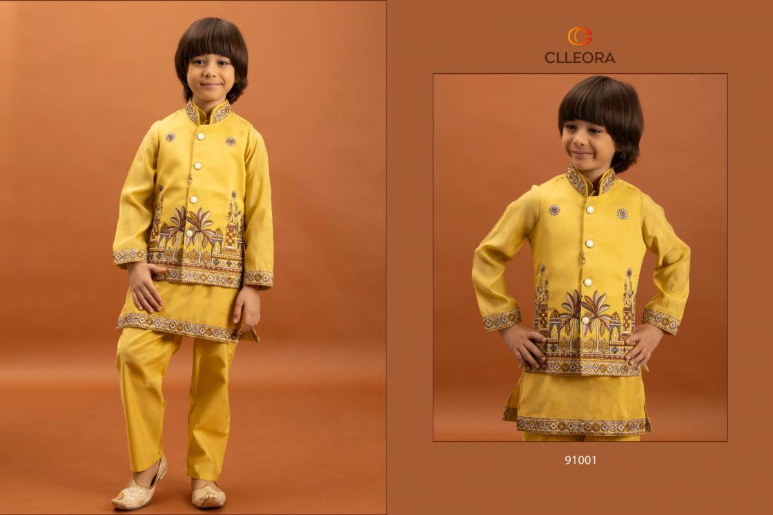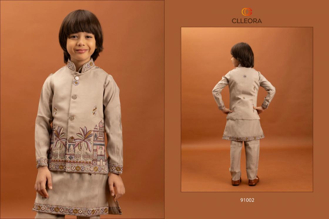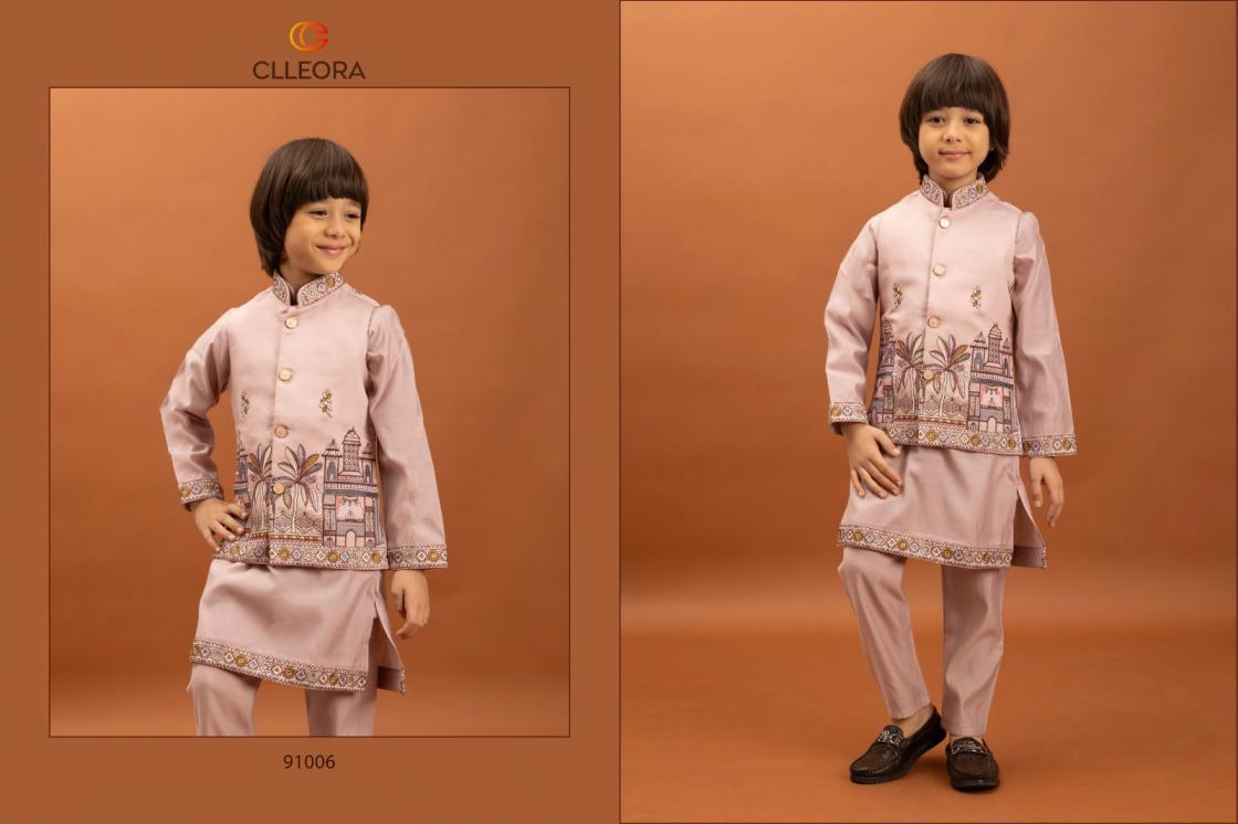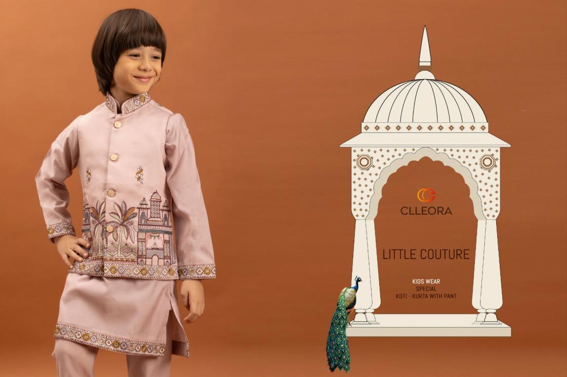 clleora little couture viscose silk fully stitch kids festive koti kurta with pant