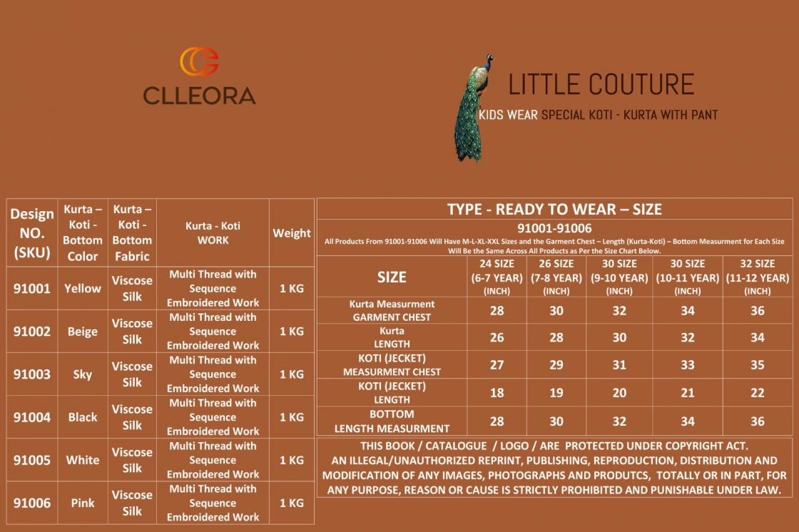 🧍 CLLEORA - NEW KIDS SPECIAL COLLOCTION 2025 🧍 💸 LITTLE COUTURE • RATE LIST (KURTA + KOTI + PANT (BOTTOM) 💸 91001: 1230/- KIDS SIZE : ⚠️🧿 WE MANUFACTURE KIDS WEAR IN SIZES 24 TO 32 (6 YEAR TO 12 YEAR). WE HAVE ALREADY PROVIDED THE PROPER SIZE DETAILS IN THE DESCRIPTION FOR YOUR REFERENCE. PLEASE CHECK THEM BEFORE PLACING YOUR ORDER. ⚠️🧿 Weight: 1 KG Real Pic Available. ✅ |