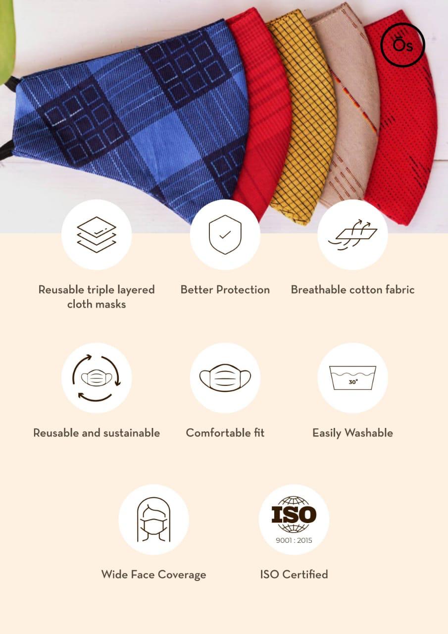 Cotton Face Mask Reusable Triple Layered Cotton Mask Buy Online At Best Rate In India