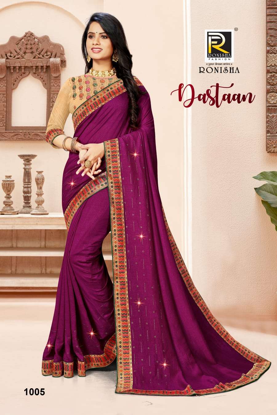 Dastaan by ranjna saree fancy border work blouse siroski diamond panel designer saree collection
