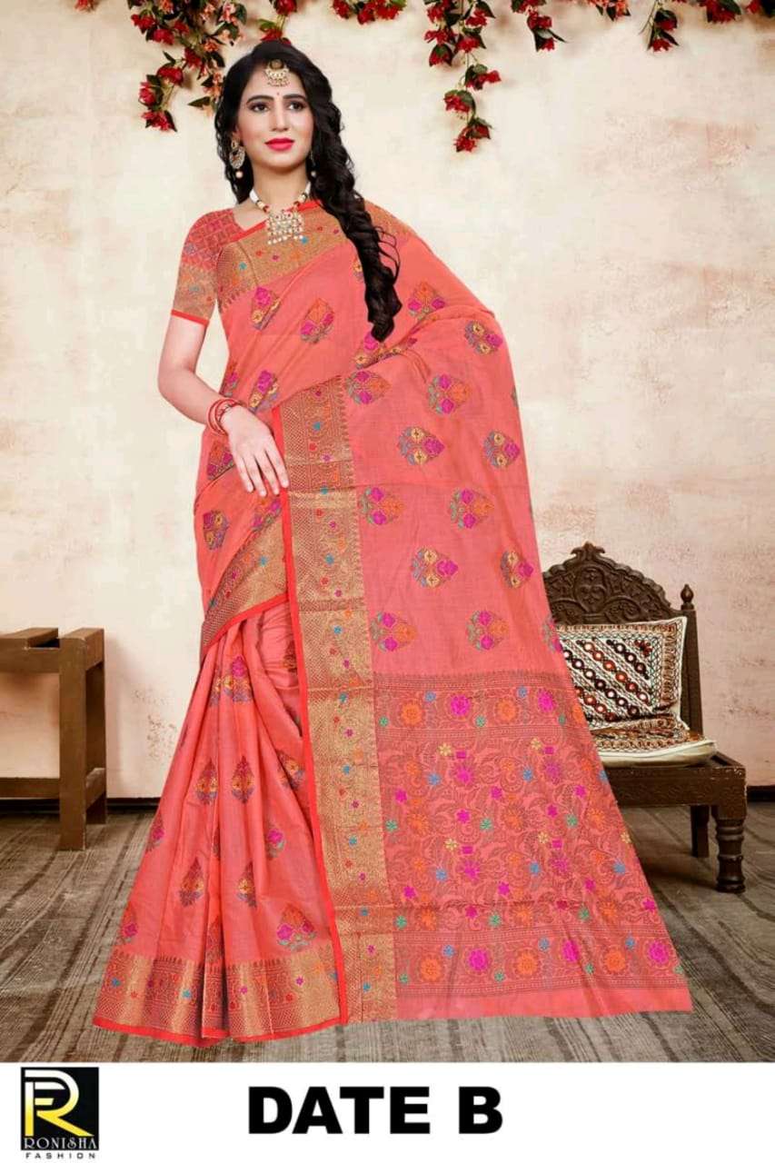 Date by ranjna saree casual wear soft cotton silk rich pallu super hit collecton