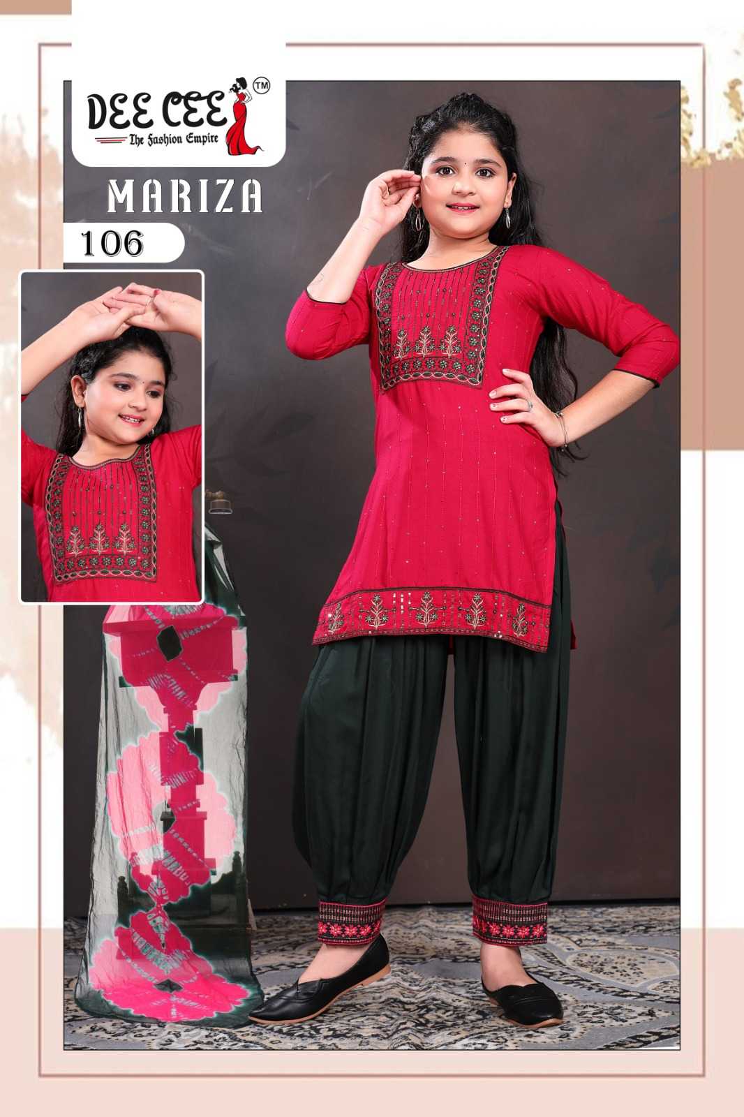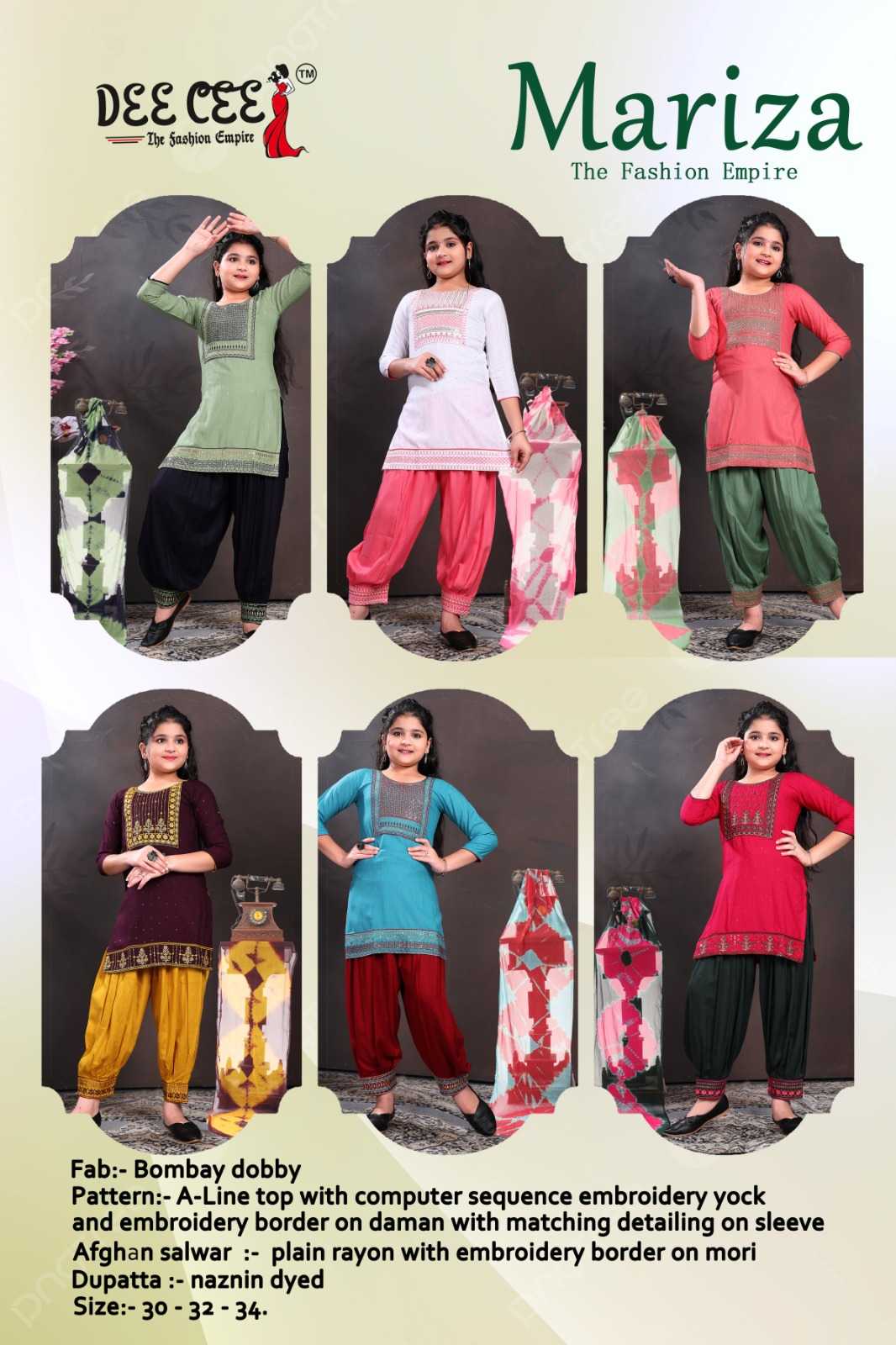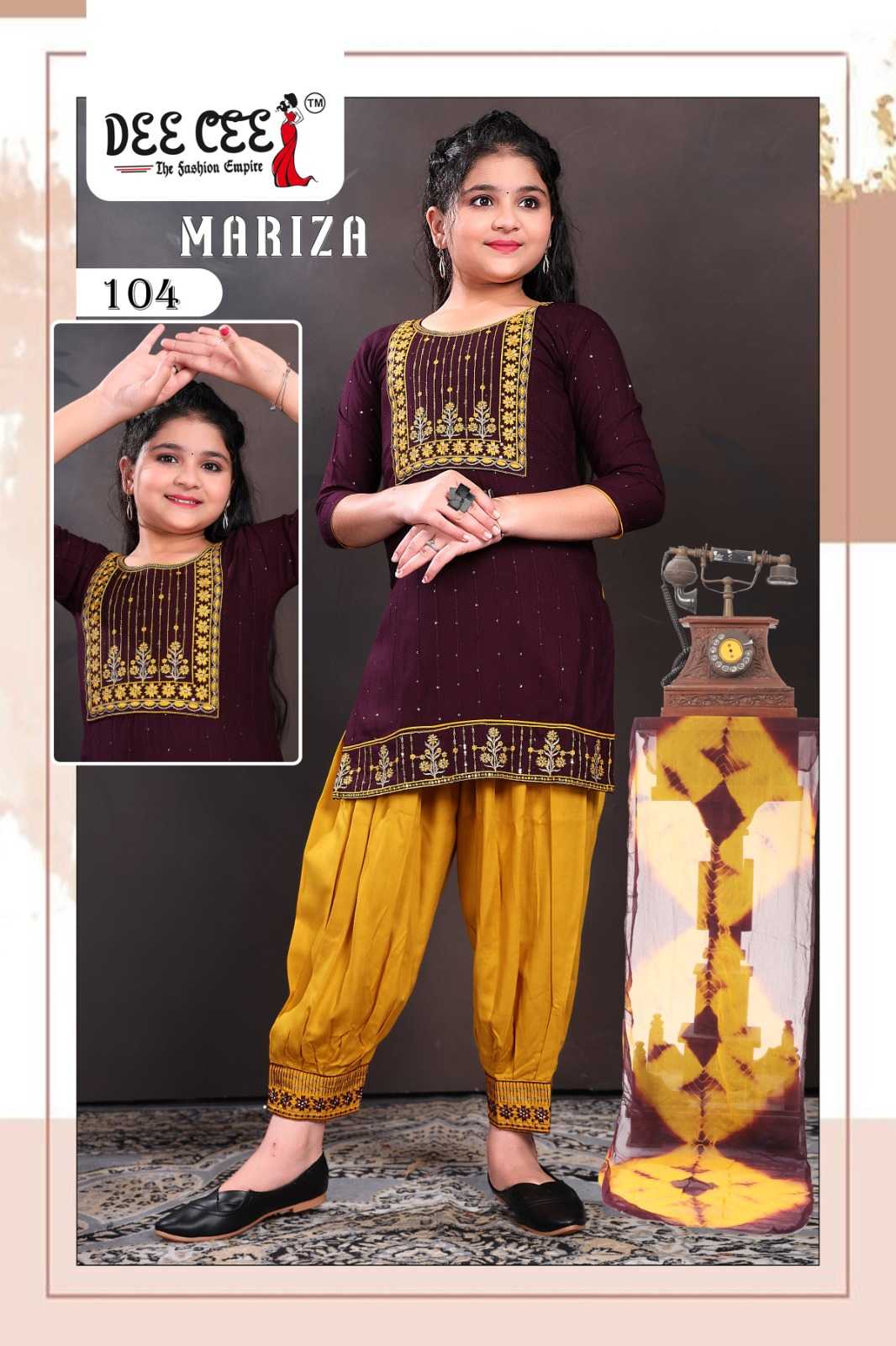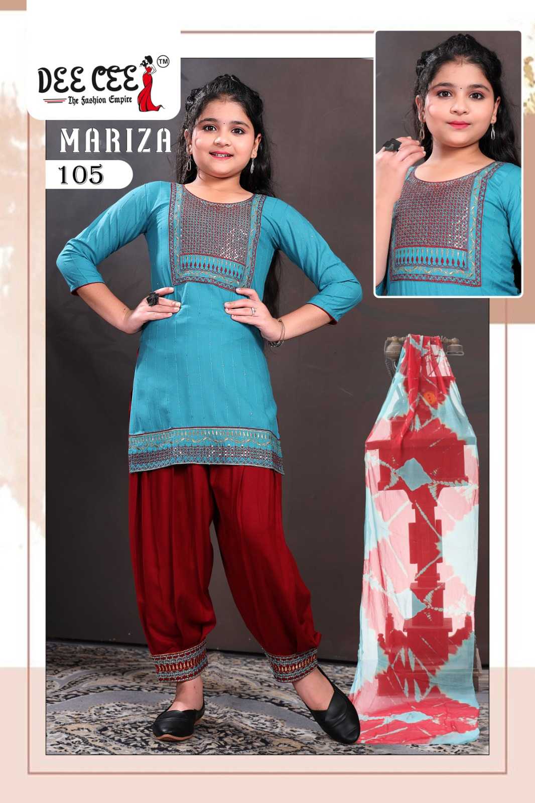 dee cee mariza fancy readymade a line kurti with bottom and nazneen dupatta girls wear combo set