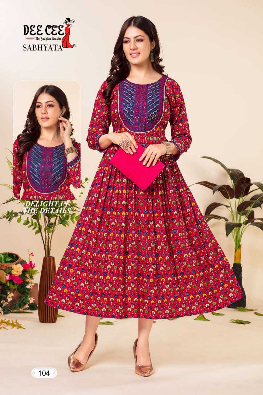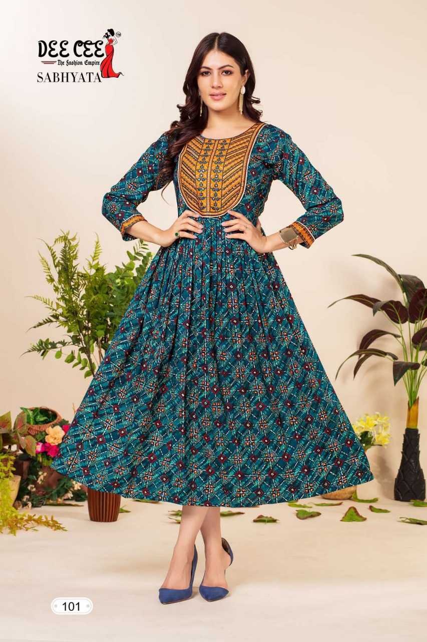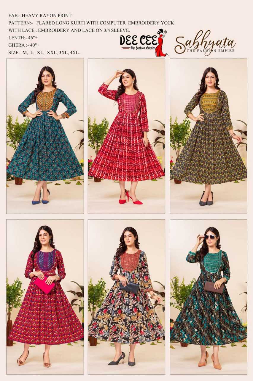 dee cee present sabhyata fullstitch flair long kurti for function wear