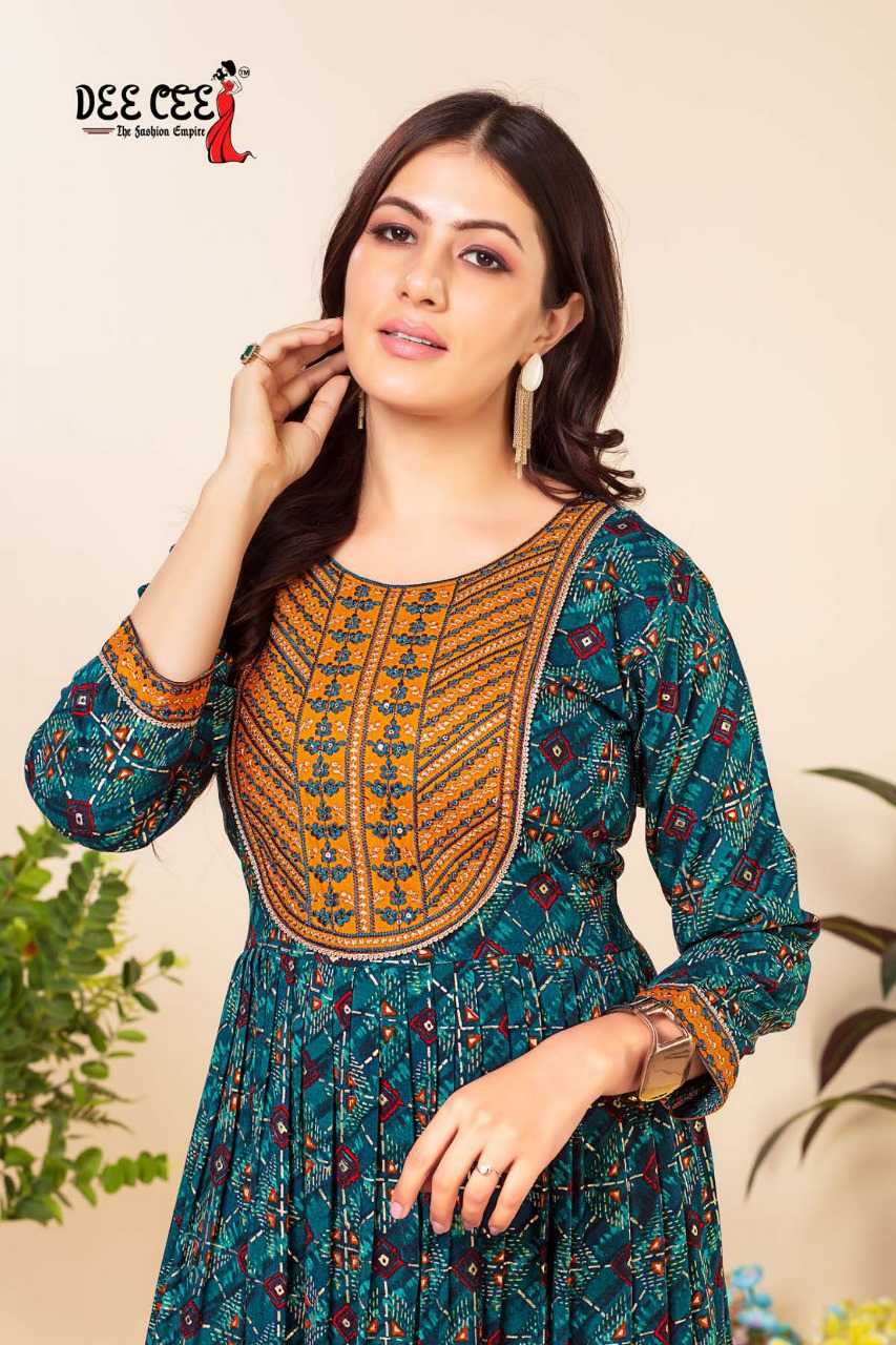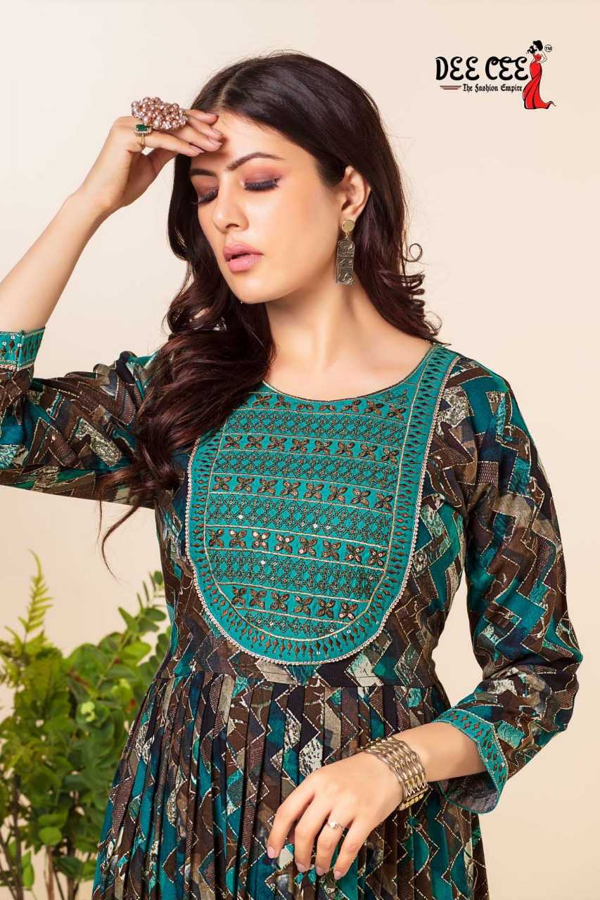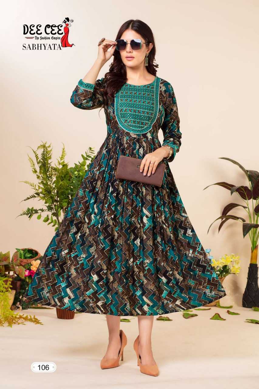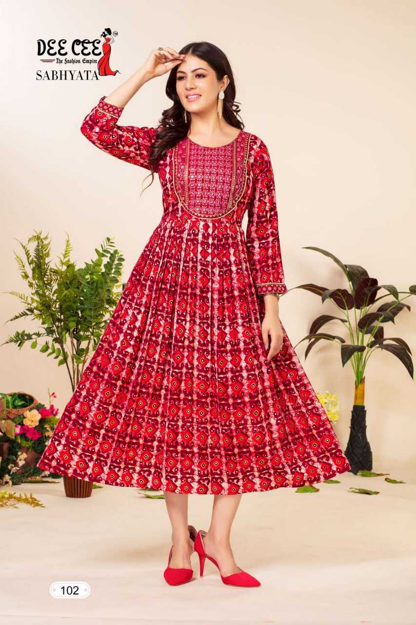 dee cee present sabhyata fullstitch flair long kurti for function wear