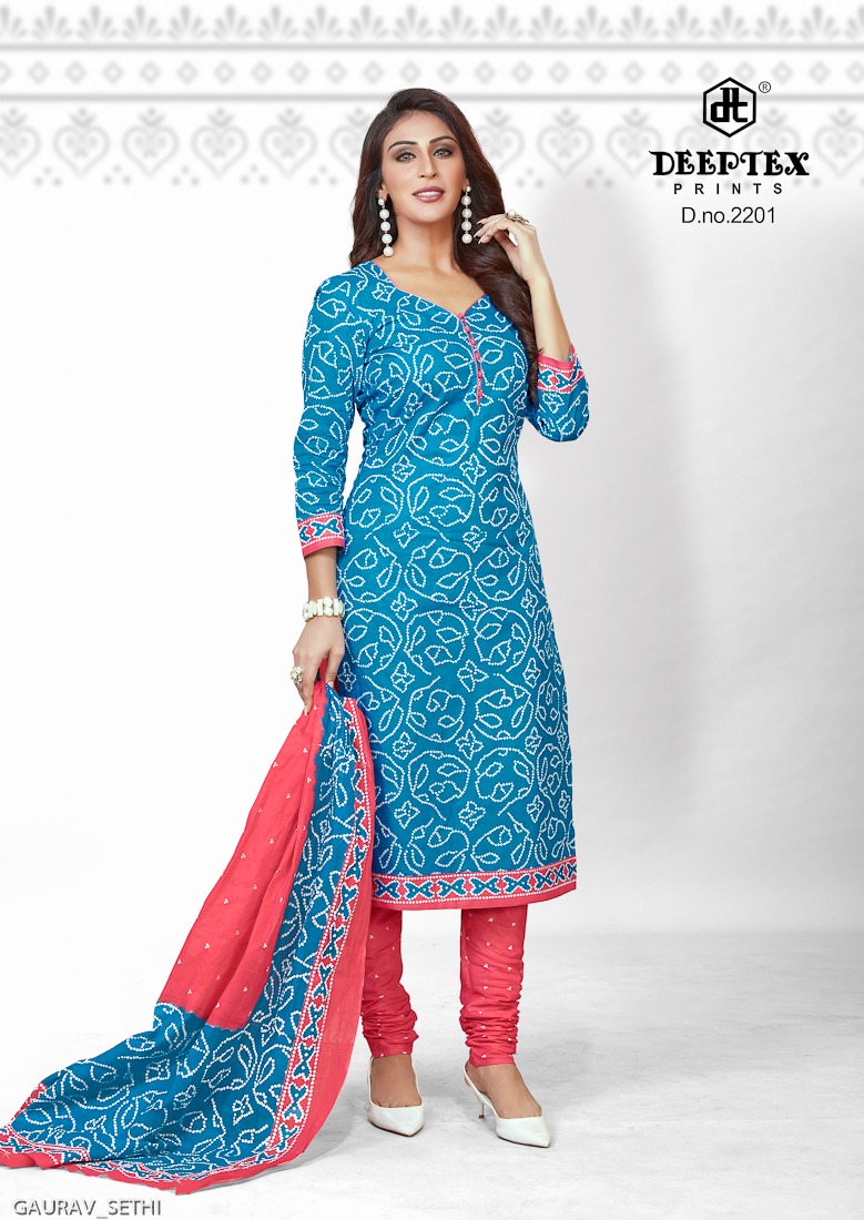 Deeptex Prints Classic Chunaris Vol 22 Bandhani Print Cotton Chudidar Dress Materials Wholesaler