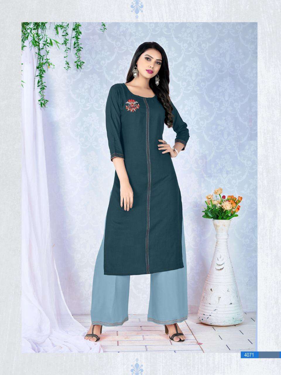 dehliz trends diva rayon kurti with palazzo set for women latest collection