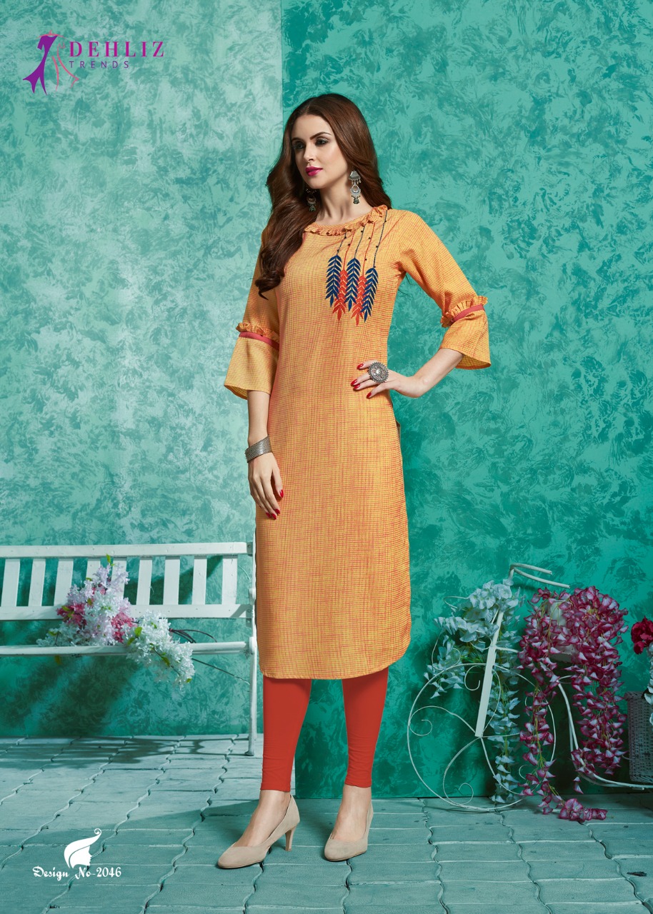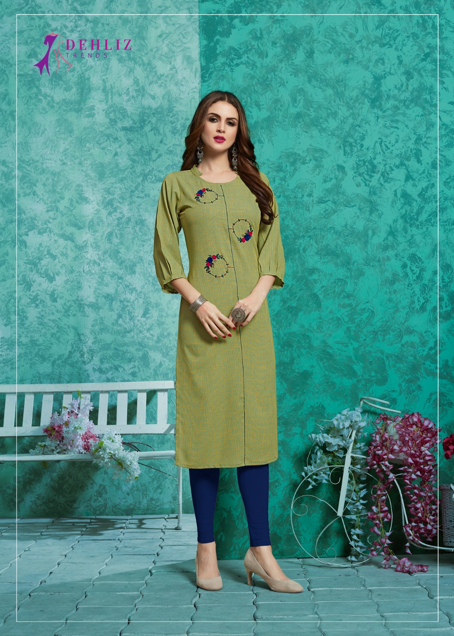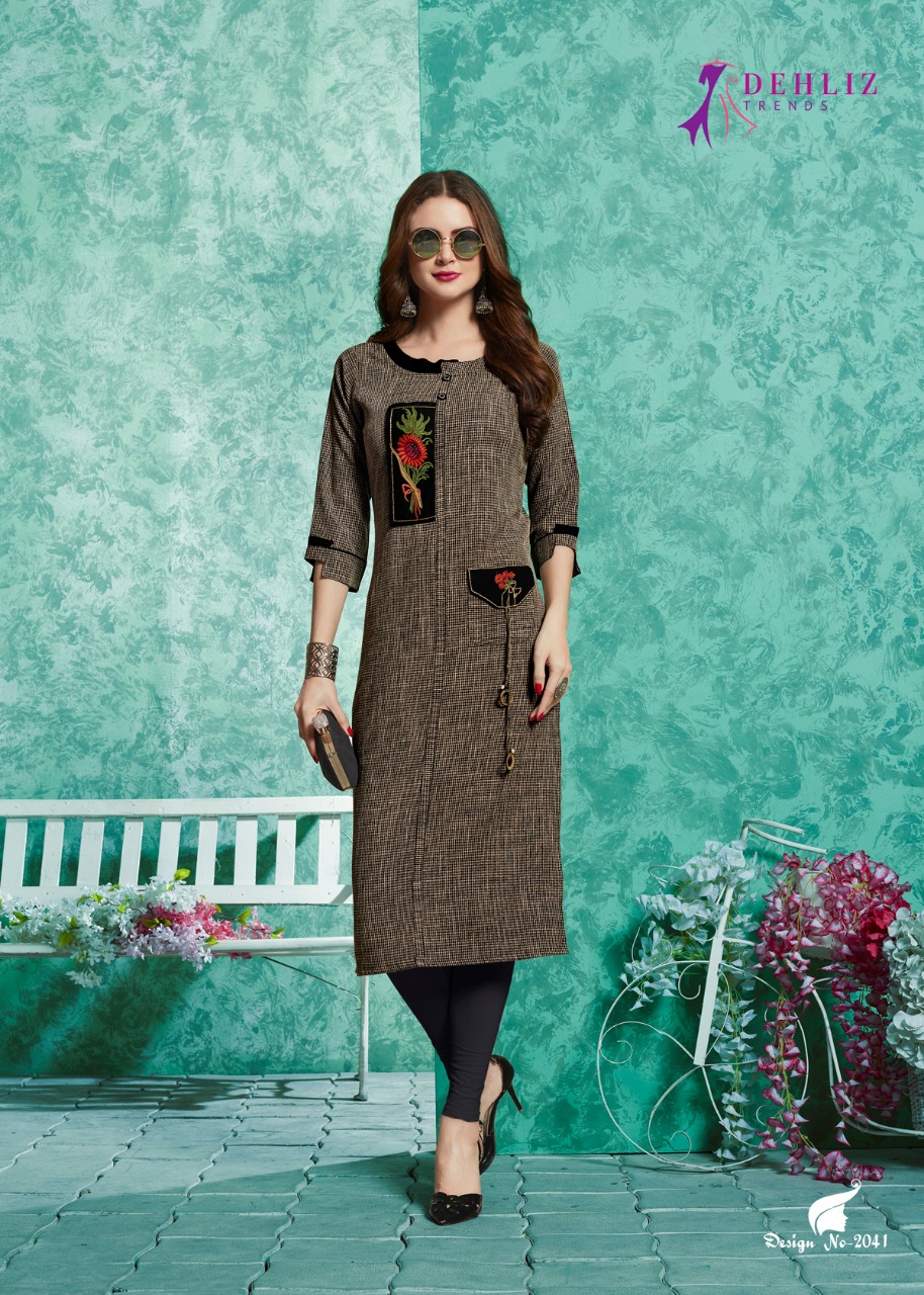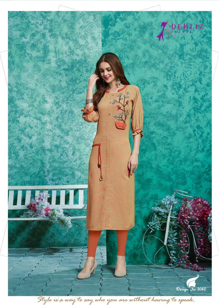 Dehliz Trends Frooti Rayon Self Checks Casual Wear Kurti Exporter In Surat