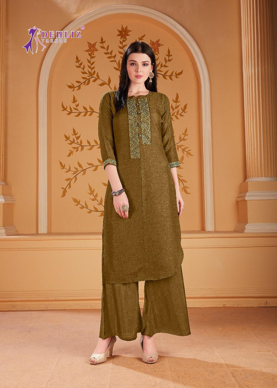 DEHLIZ TRENDS Catalogue name - PLAZZO HOUSE Details Fabrics - 1 Kurti -- matka silk +embroidery work +hand work 2. Plazzo -- matka silk Size - M(38) L(40) XL(42) XXL(44) Designs - 6⃣ pcs ₹ Rate : 7⃣2⃣5⃣only per Pcs . Set to set. GST 5 Percent Extra. Delivery from today |
