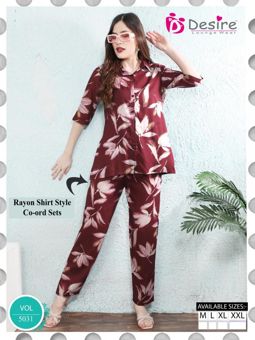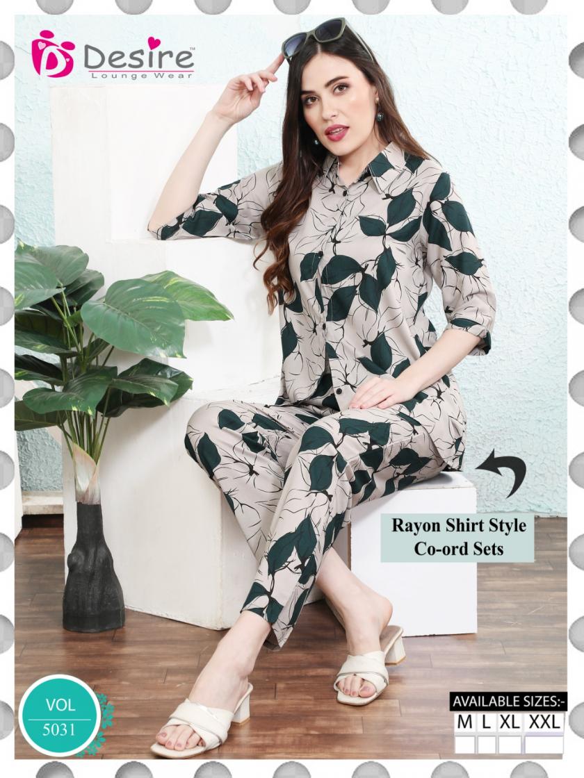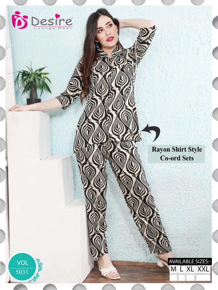 desire vol 5031 rayon shirt style readymade fancy co-ord sets