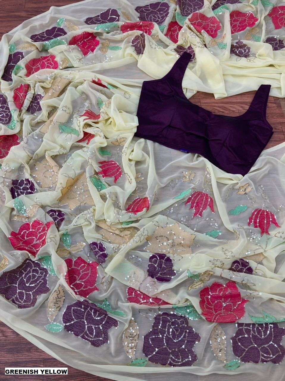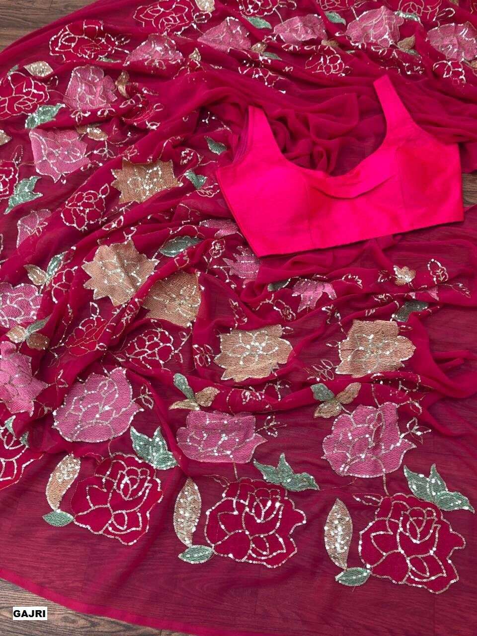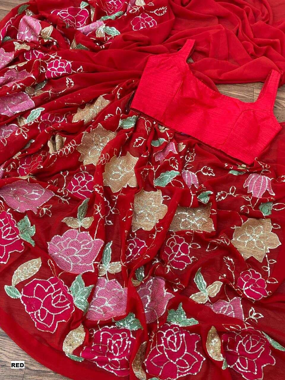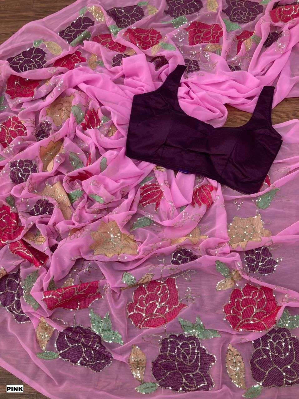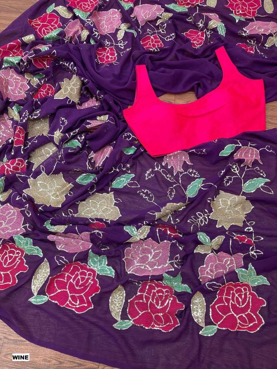 NEW DESIGNER HIT BLOCKBUSTER SAREE LAUNCHING CODE-3221 Magic Georrgte Fabric With Classy 6 Niddle Multy Sequnce Work🔥 Embroidery Details Blouse Details UNSTICHED BLOUSE BANGLORI SILK Ready to ship WE MAKE ONLY PREMIUM QUALITY |