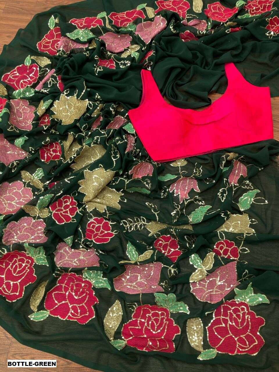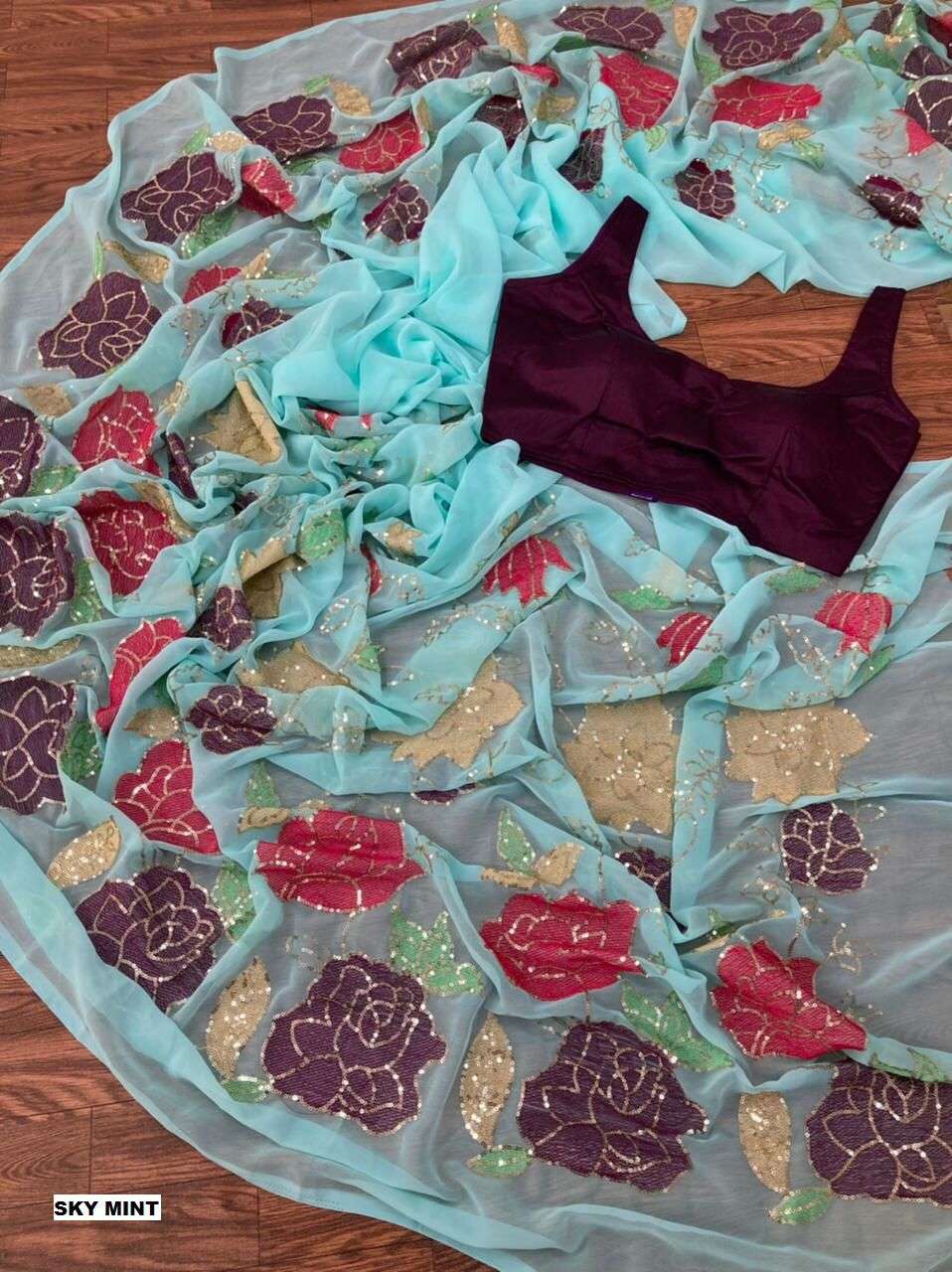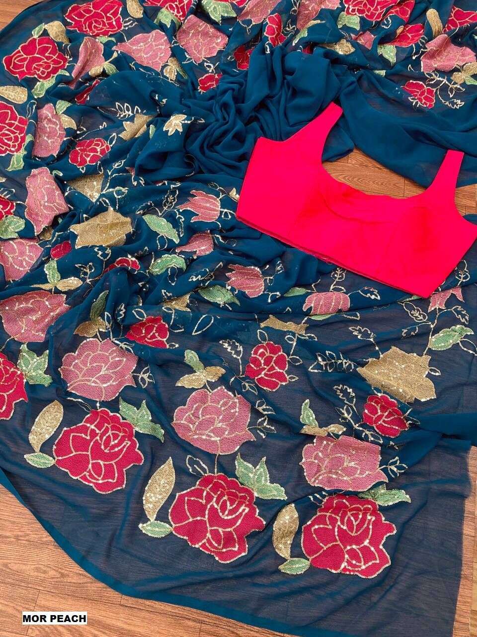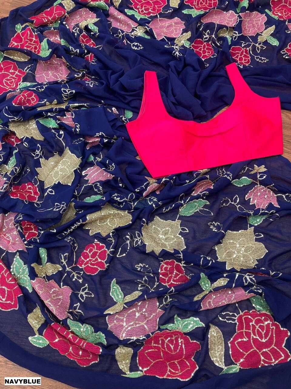 df 3221 design georgette saree with classy 6 niddle multy sequence work sarees