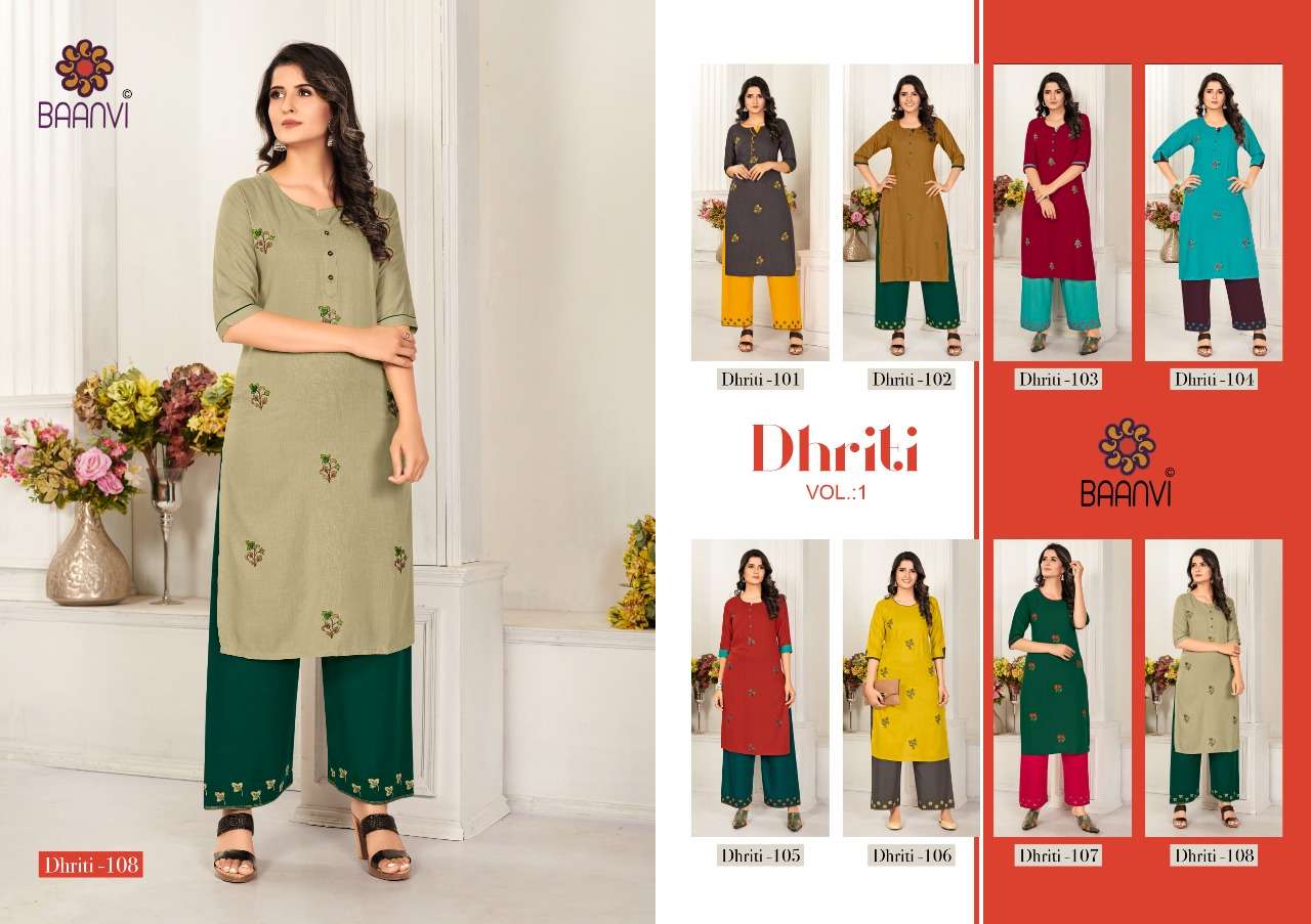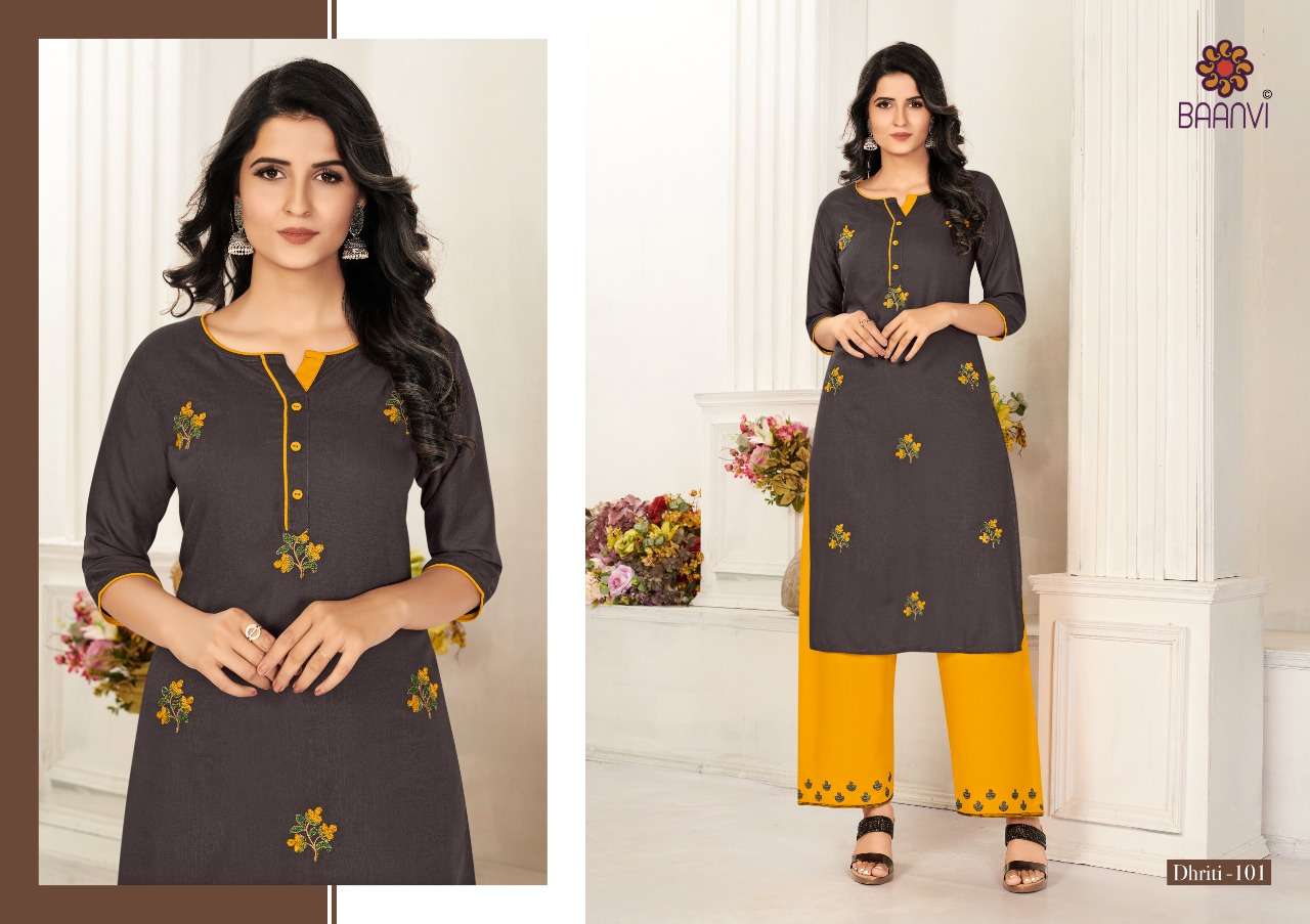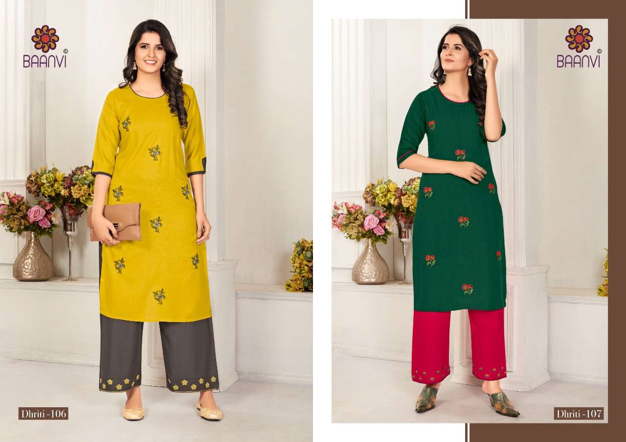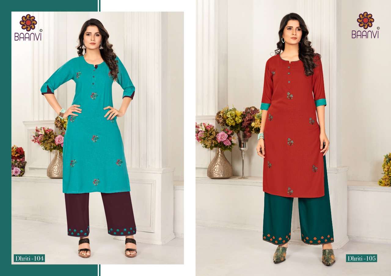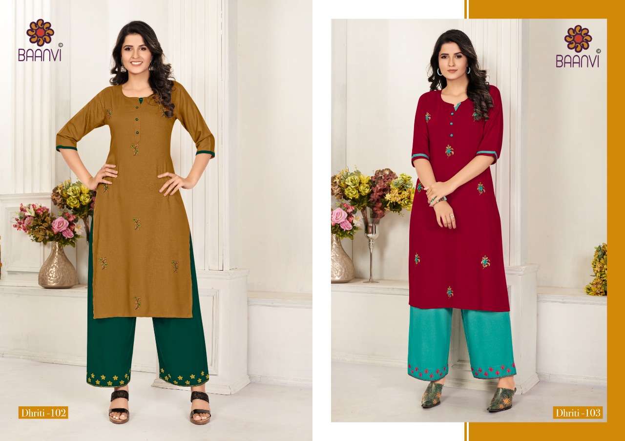dhriti vol 1 by baanvi rayon casual wear kurti with plazzo supplier