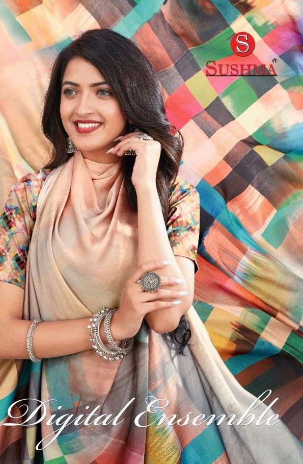 digital ensemble by sushma satin digital printed fancy saree