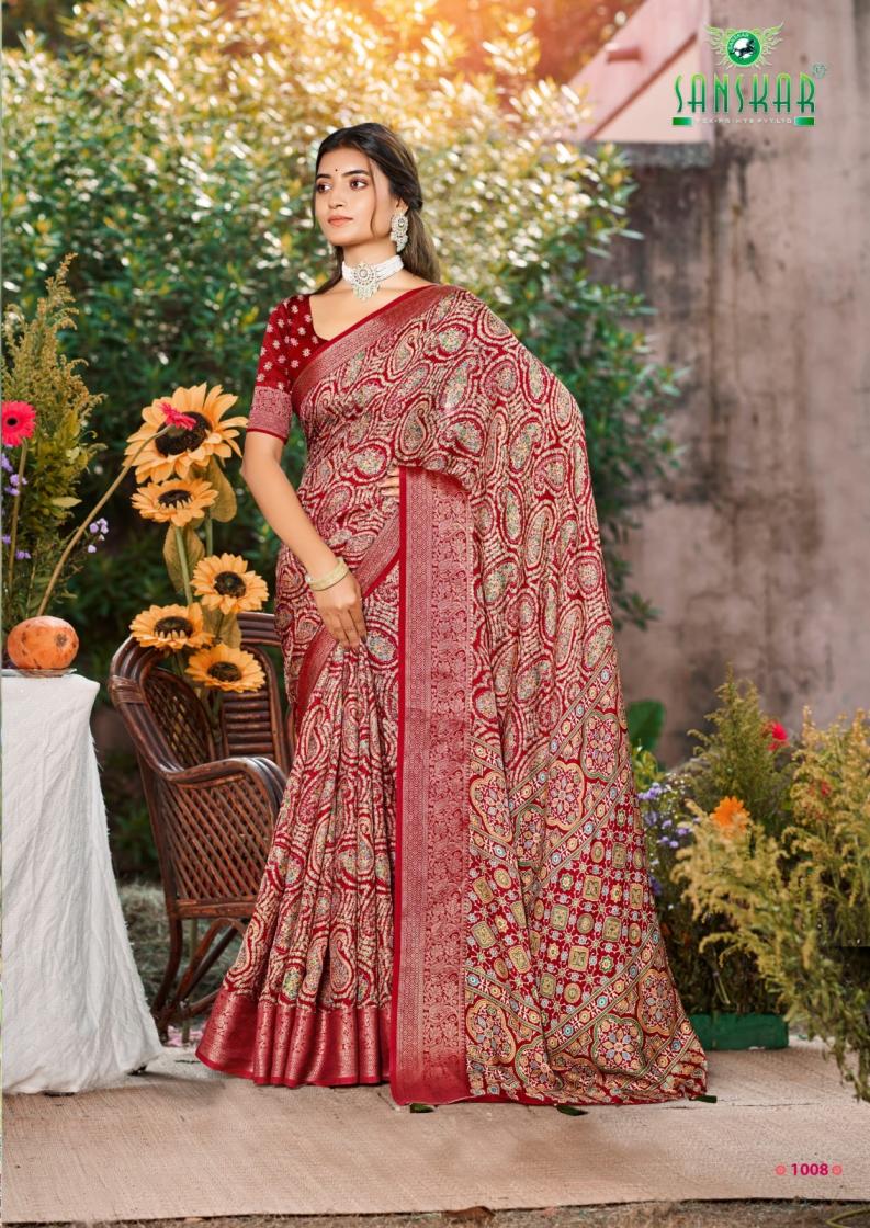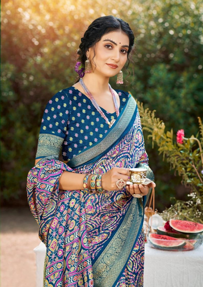 Sanskar Tex Prints Pvt Ltd CATLOUGE- DIL NOOR Fabric- Pure MASSMALO Fancy Print with Beving🪡 border & blouse Qty- 8dis RATE - 765₹ _Special New addition pure MASSMELO Catalogue!!_ |
