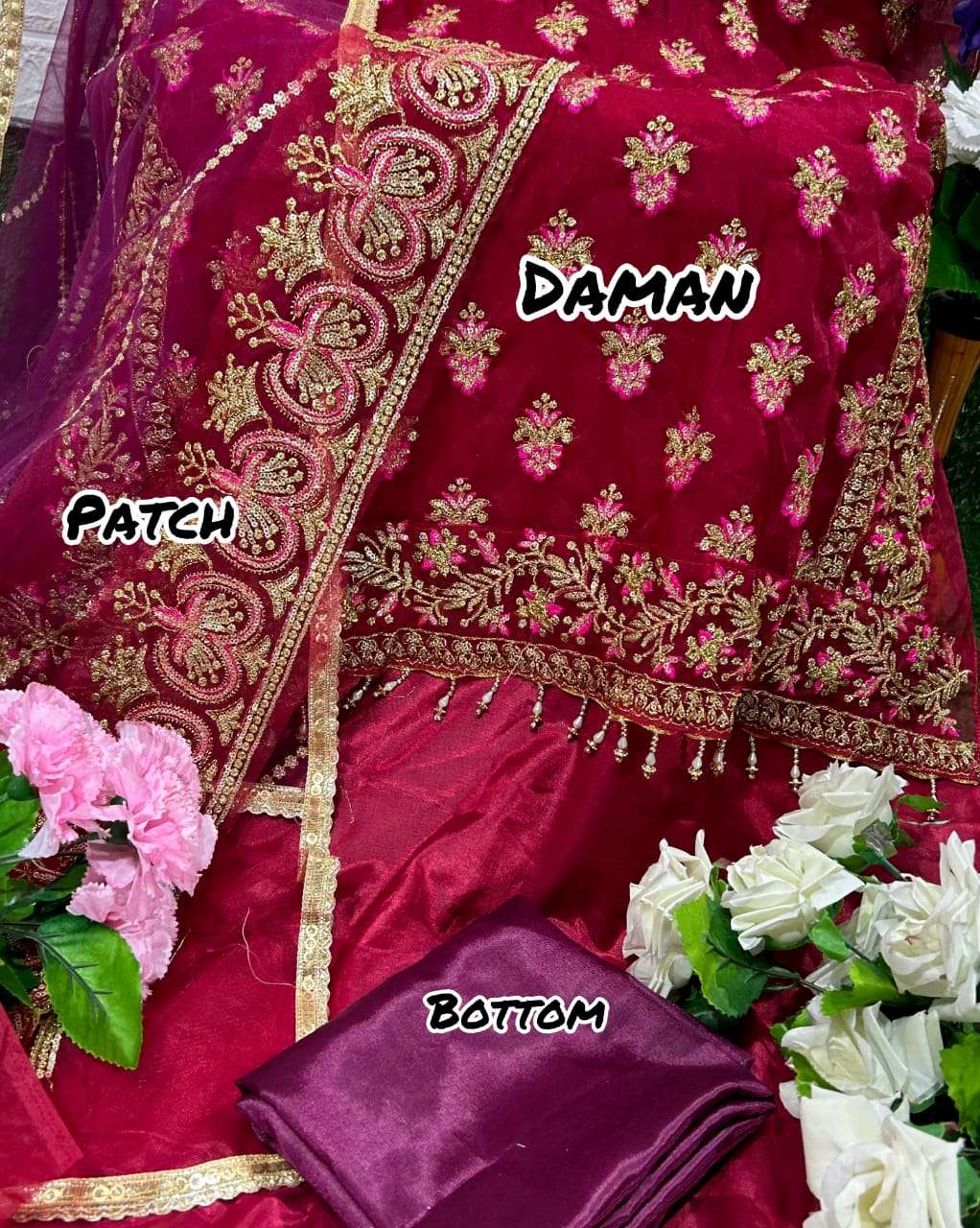 Dear BRAND NAME :- DINSAA SUIT NEW COLLCTION Dupatta :- HEAVY DAL ORGANZA WITH EMBROIDERY WORK WITH 4 SIDE LESS INNER:- SANTOON Bottom :- SANTOON WITH WORK RATE :- 1125 + GST 3 BEST COLOURS DISPATCH READY TOMORROW |