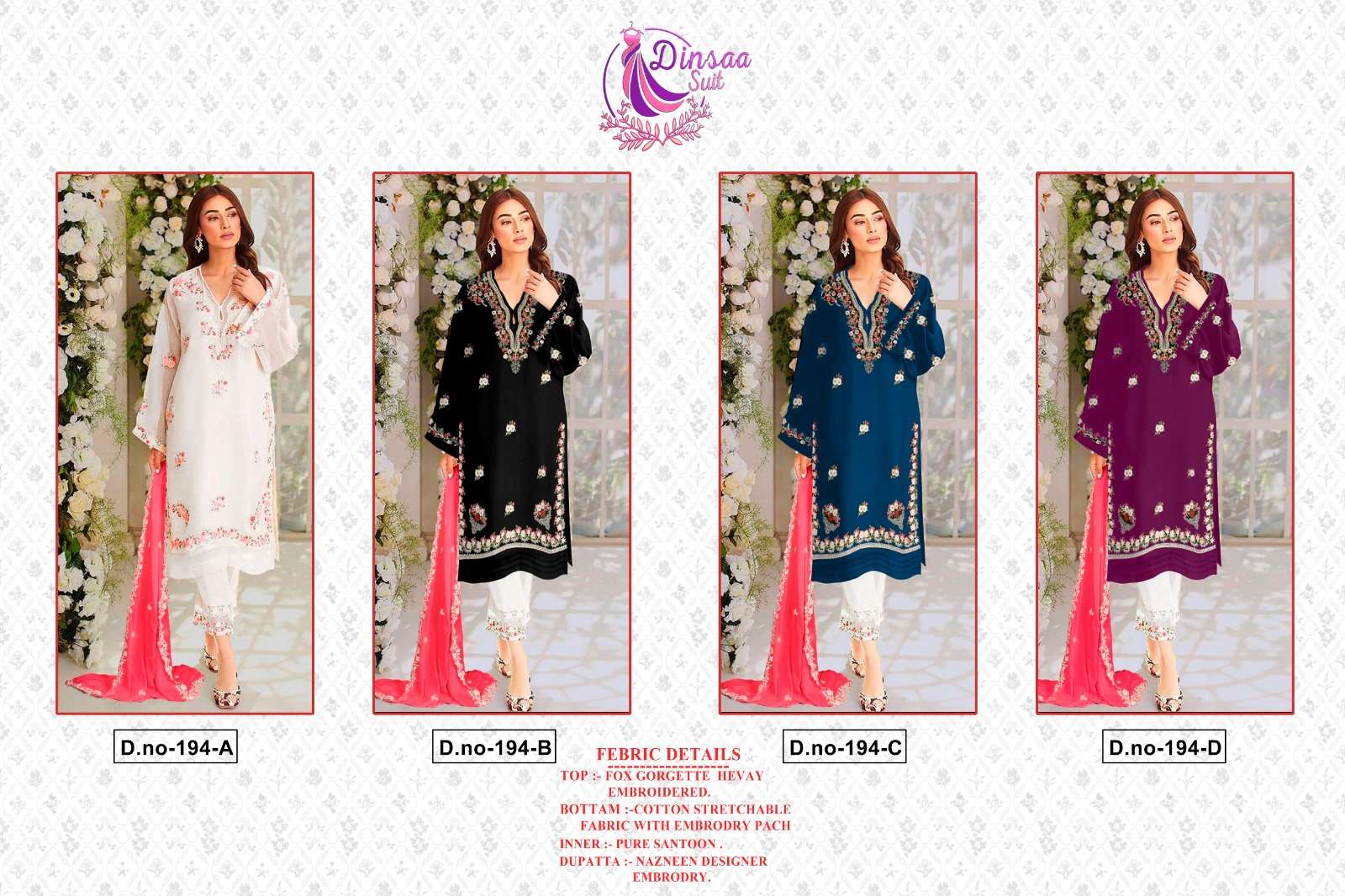 dinsaa 194 abcd heavy embroidered amazing readymade pakistani salwar kameez