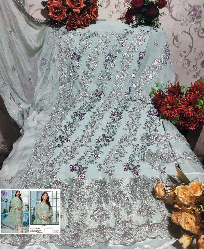 DINSAA SUIT DESIGN NUMBER TOP :- HEAVY FOX GEORGET EMBROIDERY DUPATTA :- NAZMEEN EMBROIDERY WORK BOTTOM/ INNER :- SANTOON