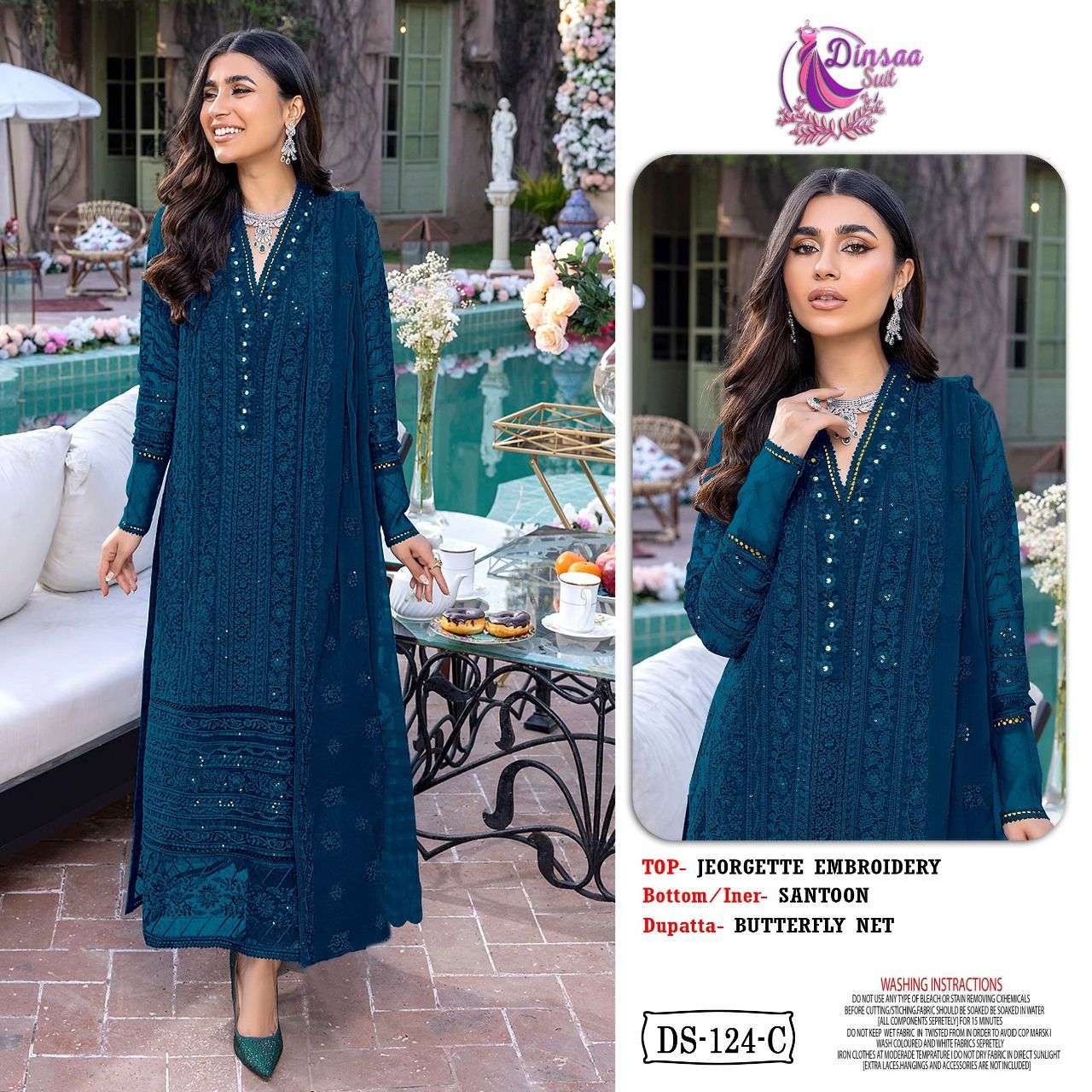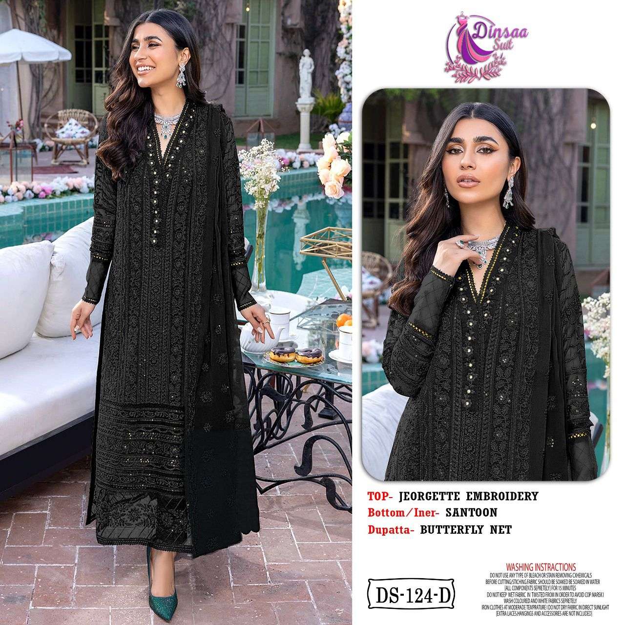 BRAND NAME:-*DINSAASUIT Top:- GEORGETTE EMBROIDERED RATE:-1090/- set wise available |