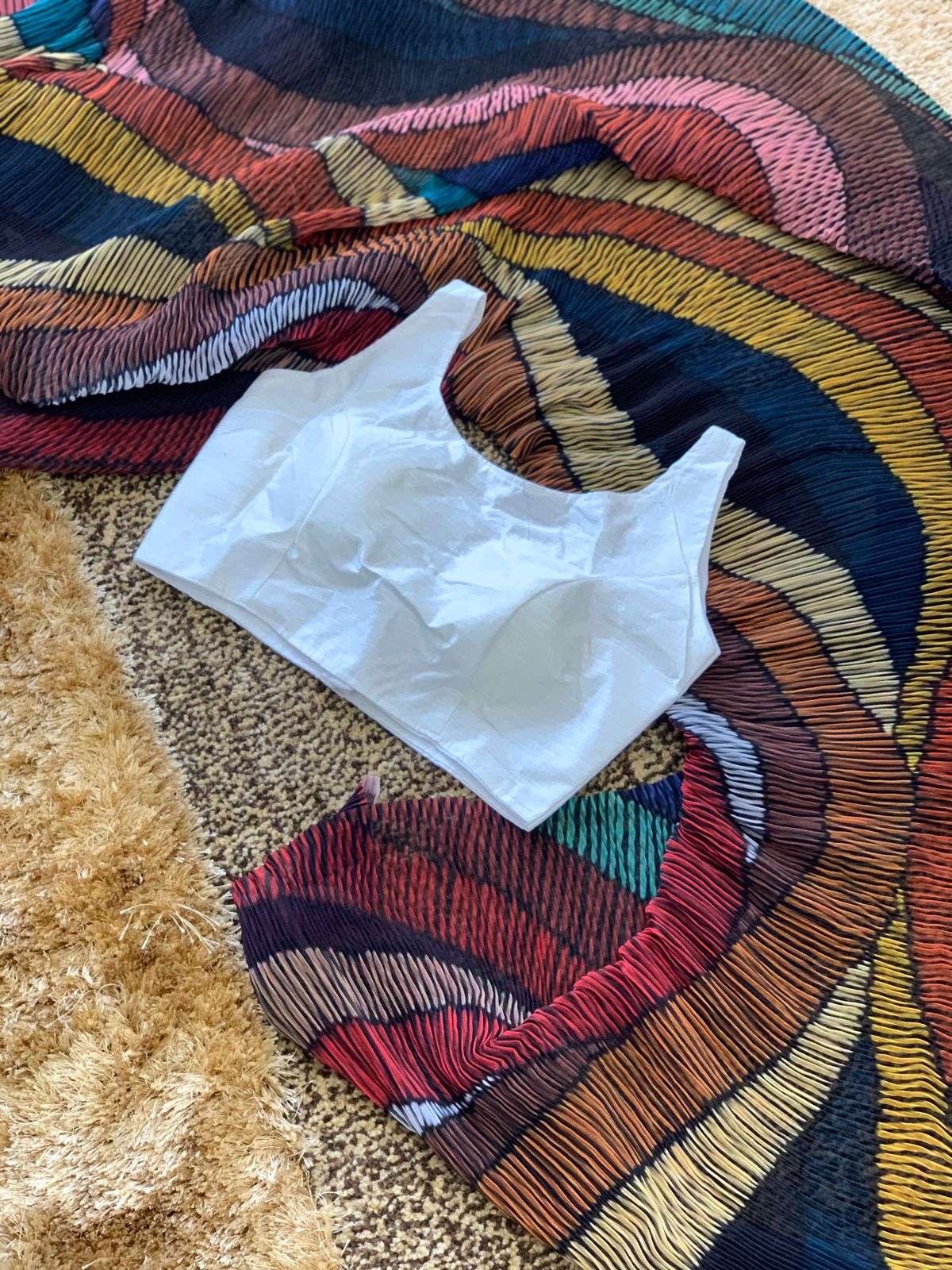एक साड़ी सिर्फ एक कपड़ा नहीं है। यह एक शक्ति, एक पहचान, एक भाषा है। 💥🔥DIVYA -RUPALI🔥 Features Blouse – *ROYAL MOON WHITE silk stitched blouse with 38 size max can go upto 42 size sleeves attached * |