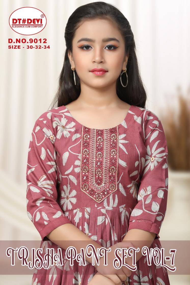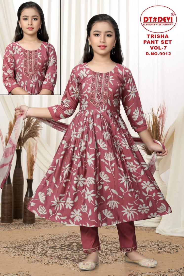 dt devi trisha pant set vol 7 9012 fully stitch vetican print kids combo kurti with dupatta