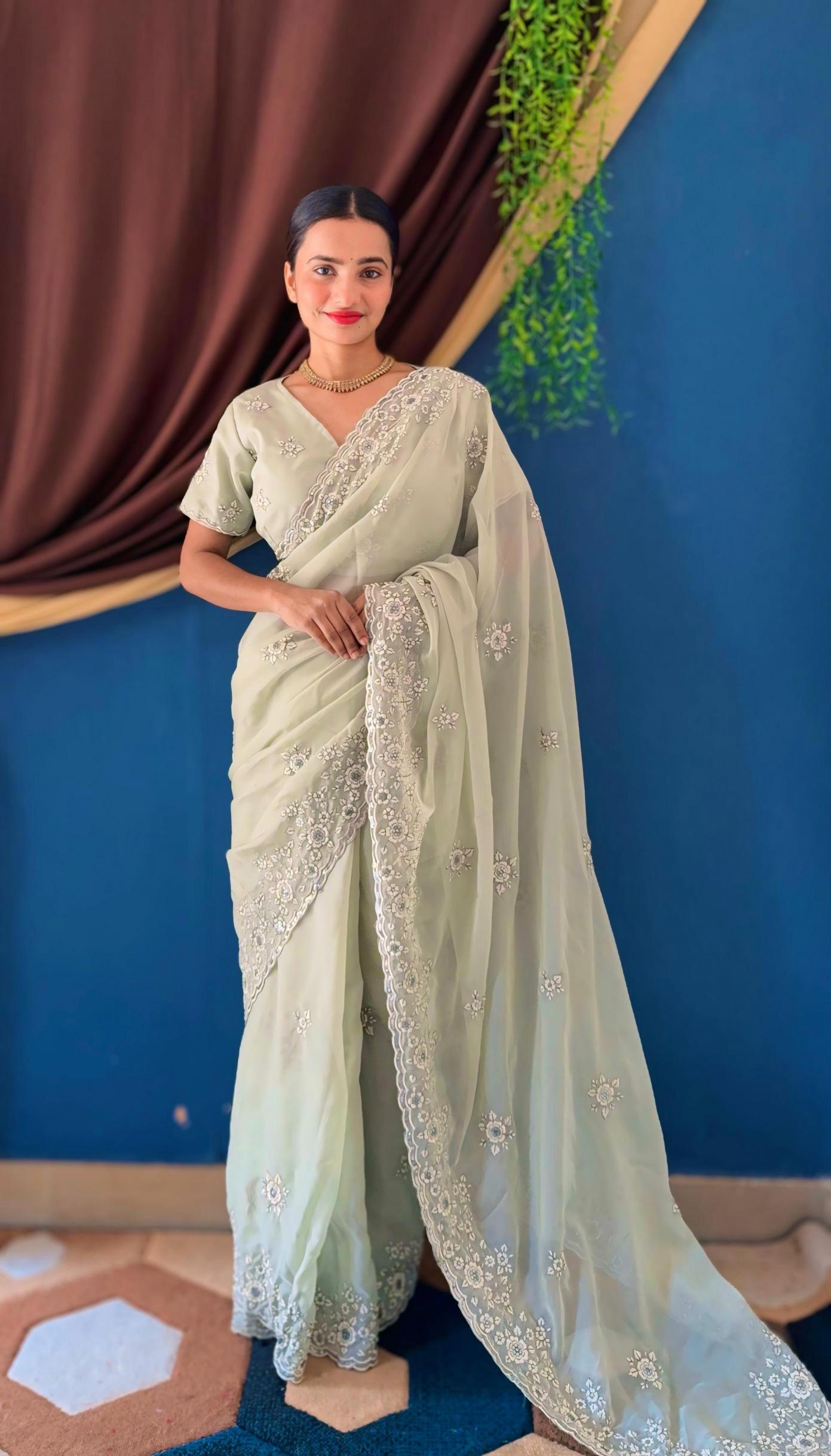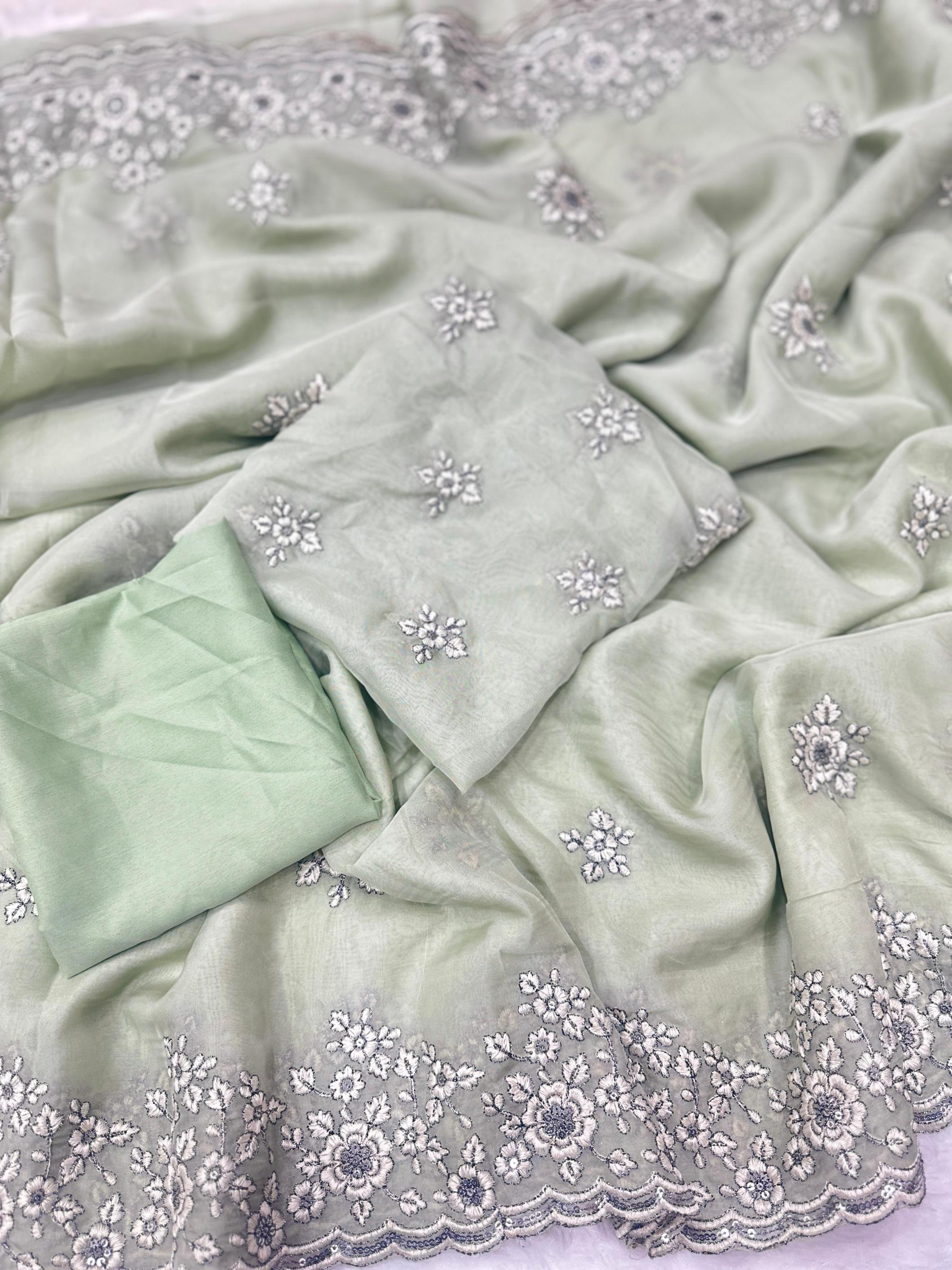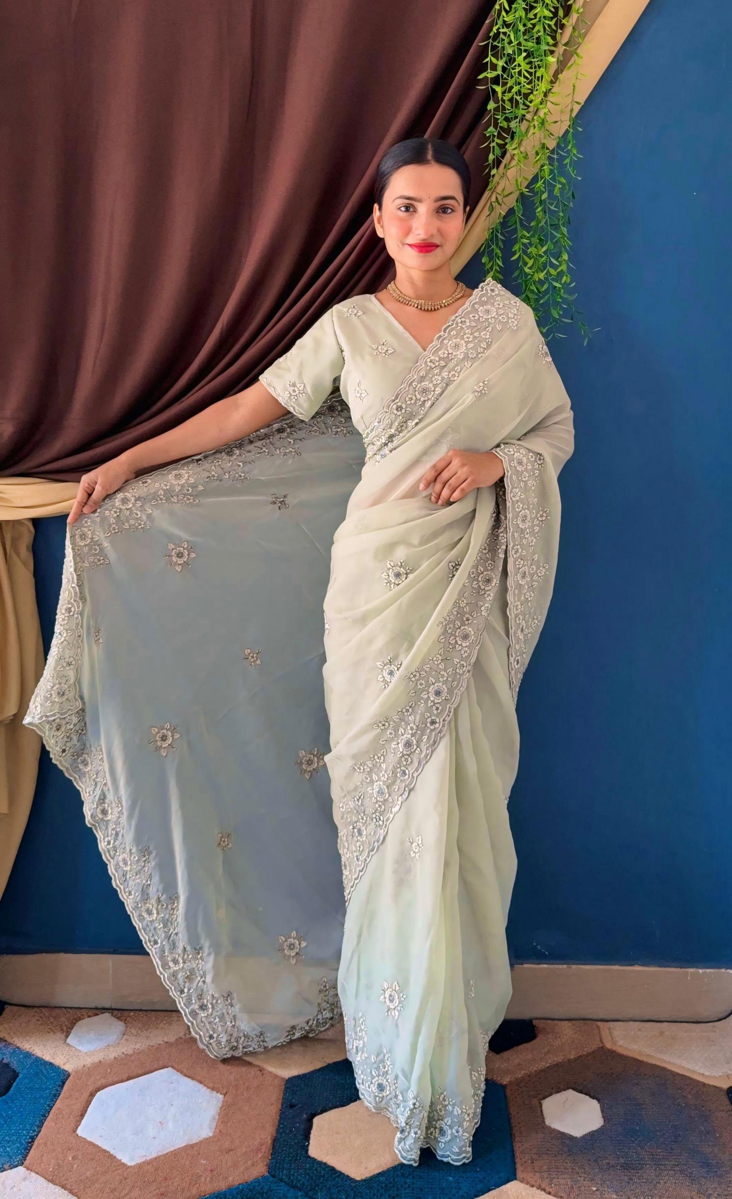 ⭐️DN:DVD ON 5098 🥻FABRIC:TABBY ORGENZA SILK WITH SEQUENCE EMBROIDERY DESIGN C’PALLU WORK SAREE 👚BLOUSE:TABBY ORGENZA SILK WITH EMBROIDERY DESIGN WORK ⚖️WEIGHT:650GMS 💴RATE:1195₹ 📏SAREE CUT:6.30 MTR WITH BLOUSE 😊DESIGNER BOUTIQUE AND SHOWROOM QUALITY PRODUCT |