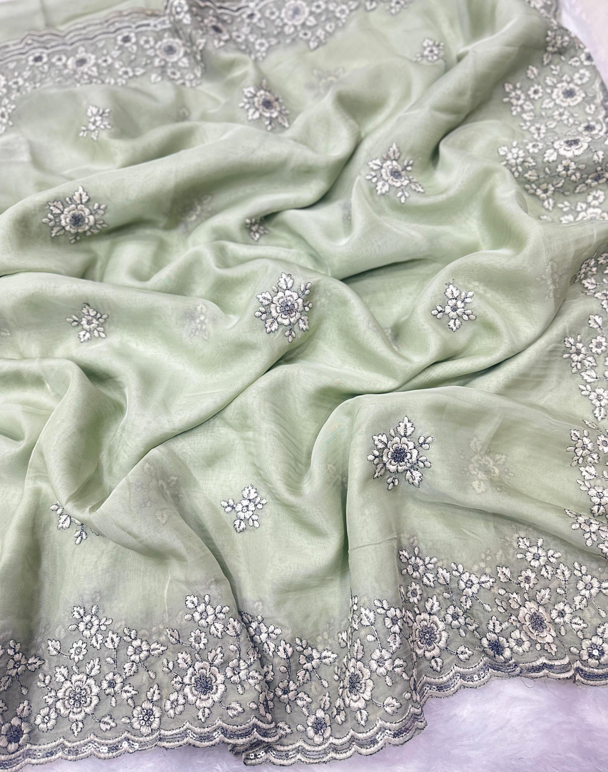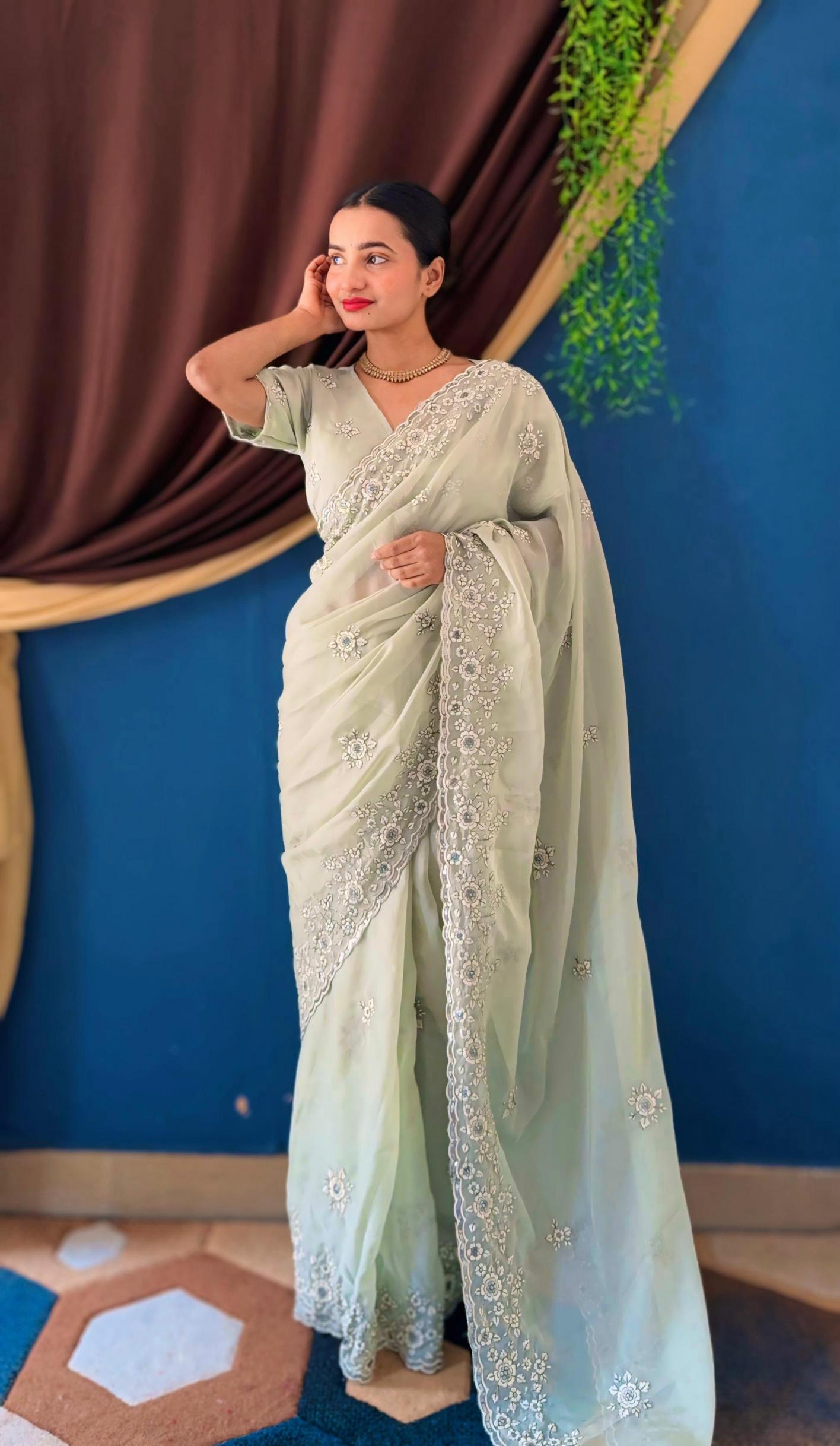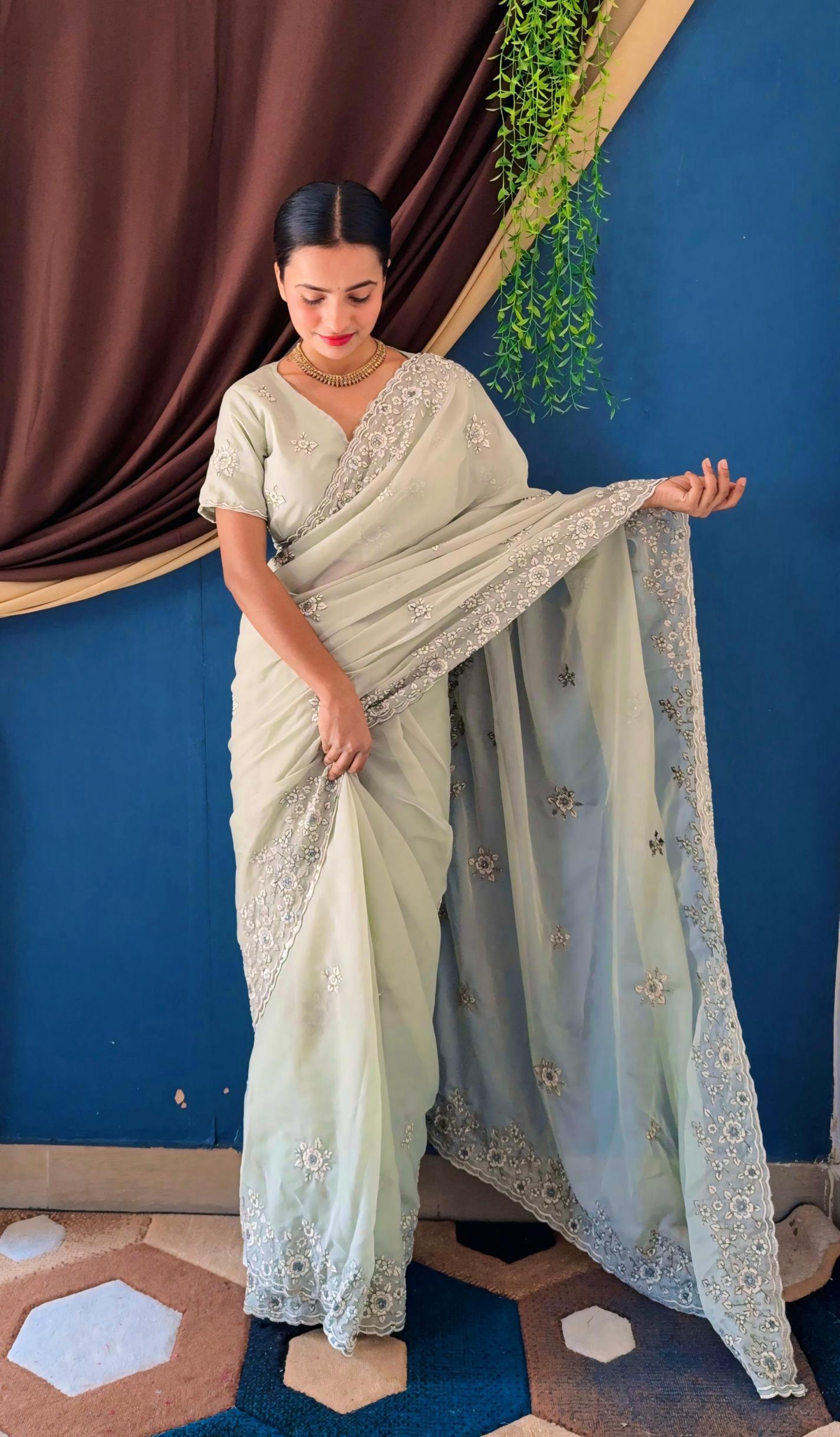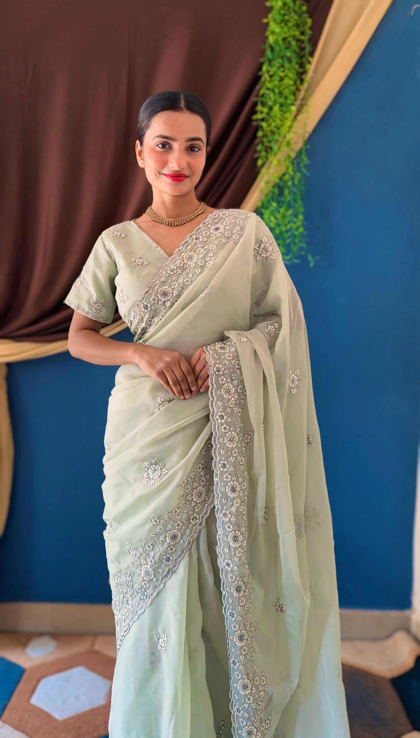 ⭐️DN:DVD ON 5098 🥻FABRIC:TABBY ORGENZA SILK WITH SEQUENCE EMBROIDERY DESIGN C’PALLU WORK SAREE 👚BLOUSE:TABBY ORGENZA SILK WITH EMBROIDERY DESIGN WORK ⚖️WEIGHT:650GMS 💴RATE:1195₹ 📏SAREE CUT:6.30 MTR WITH BLOUSE 😊DESIGNER BOUTIQUE AND SHOWROOM QUALITY PRODUCT |