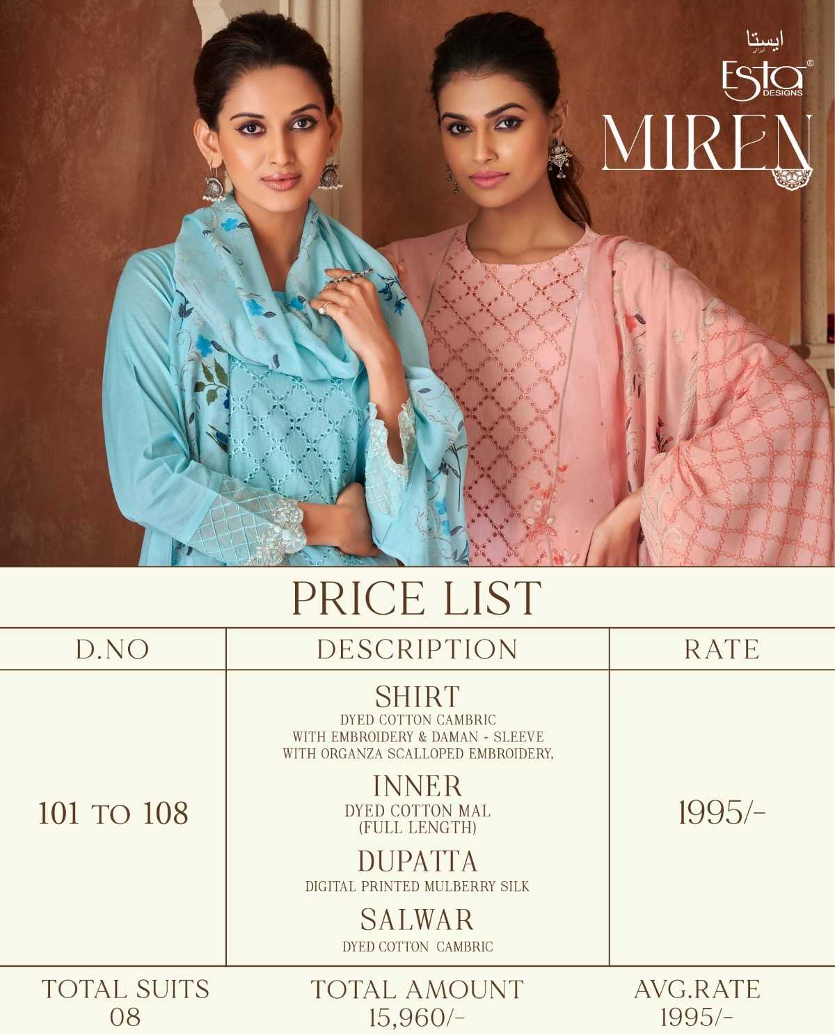 Esta Designs Presents Latest Collection Launched on 06-03-2024. Presenting Beautiful collection of 8 PCS with Unstitched .