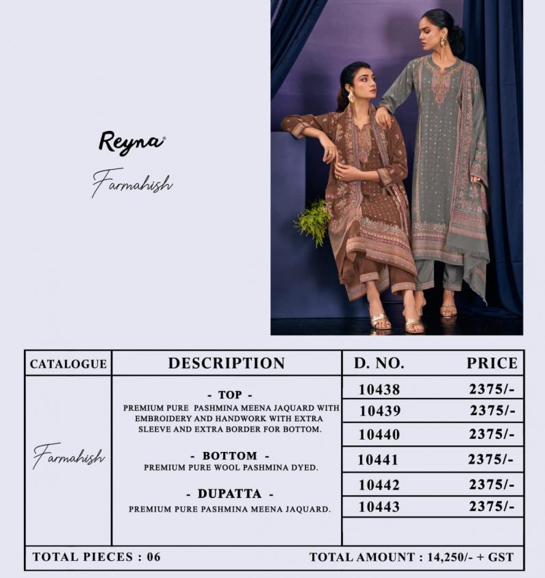 farmahish by reyna pashmina meena jacquard hit design 3pcs dress