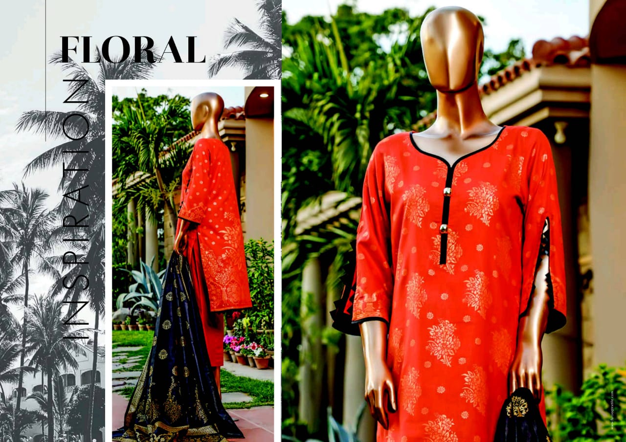 Farooq Textile Announcing a Pree Booking! MOOSAJEE announces Ayesha Hiba Banarsi Collection 6 Desings with 2 colours Description:- Printed Lawn Shirt. Printed Lawn Dupata 4 Side. Dyed Cambric Trouser. Rate ~ 1050/-₹ Note:- Fancy Bag with Picture Wholesale Booking start Now.. |