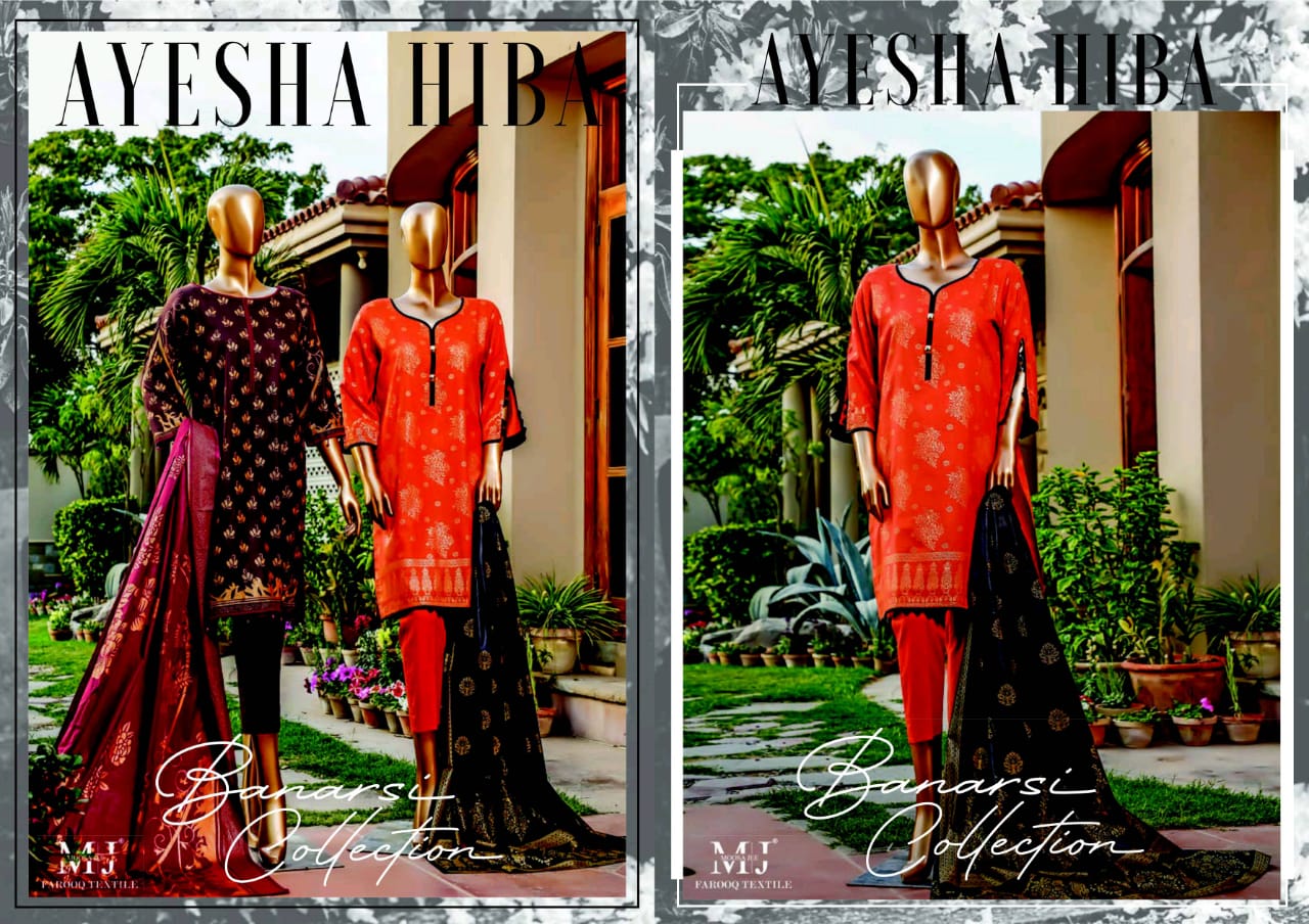Farooq Textile Moosajee Ayesha Hiba Banarasi Printed Lawn Original Pakistani Suits