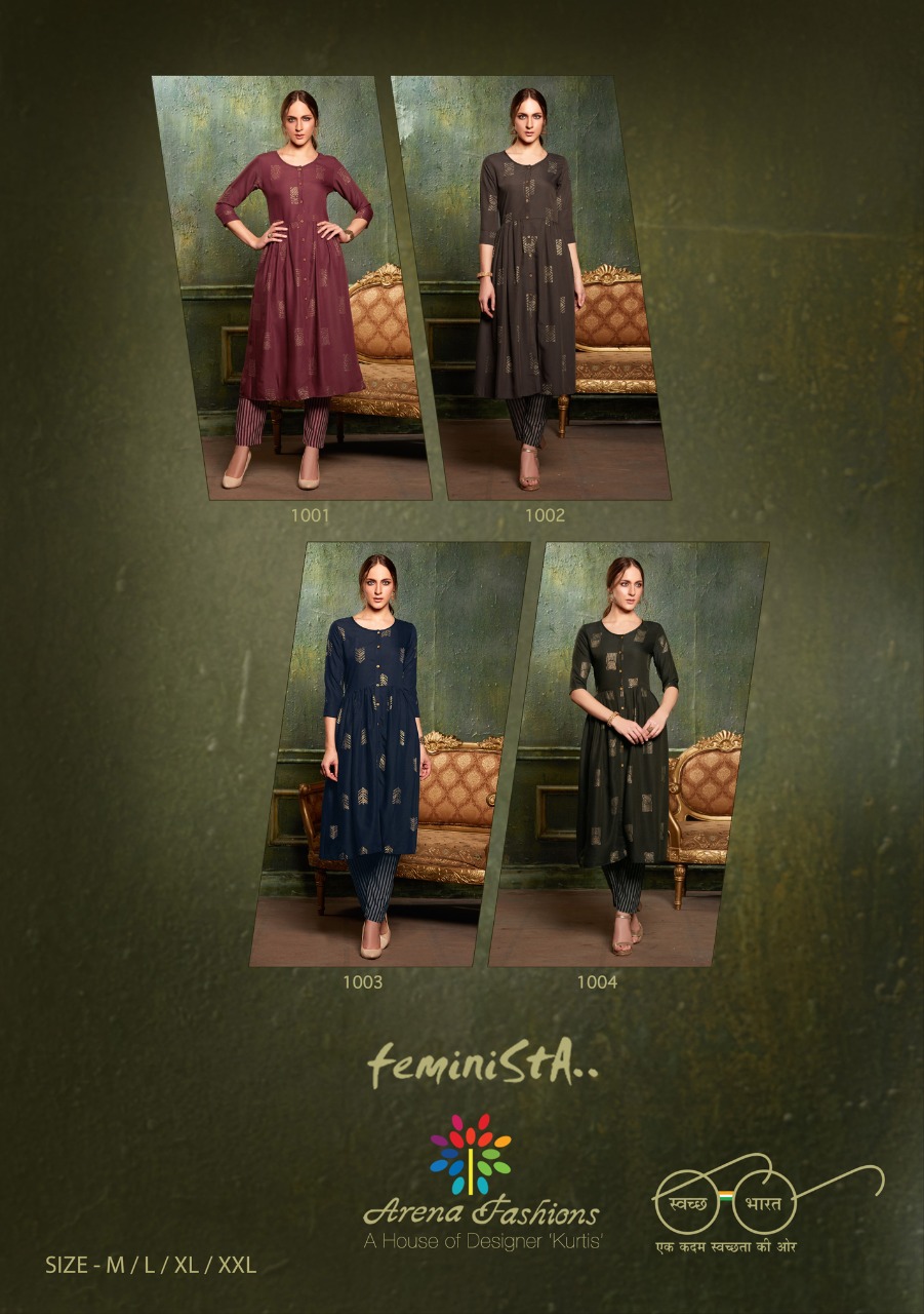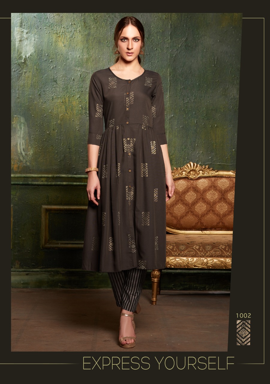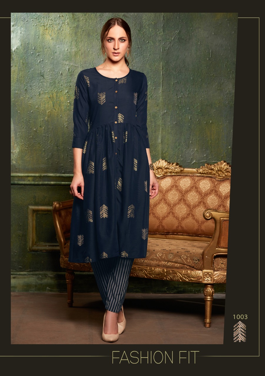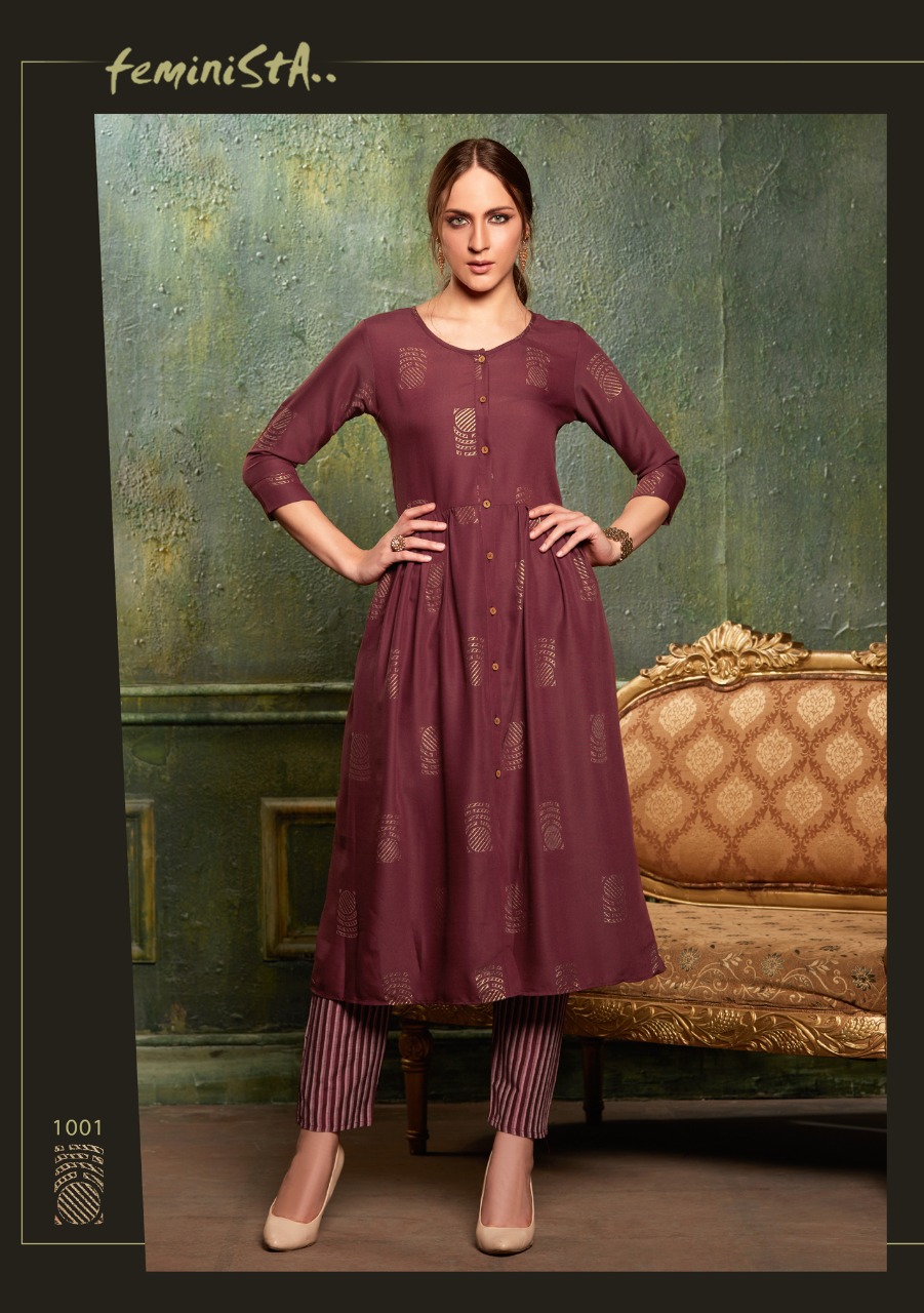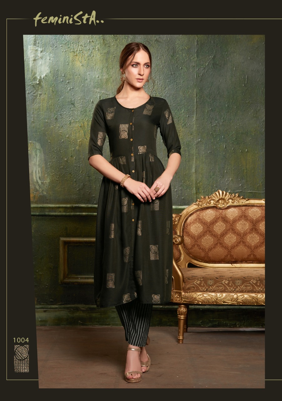 Feminista Zohra Rayon Foil Kurti With Pant Wholesaler