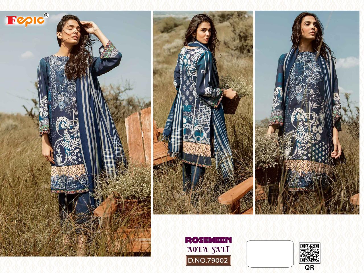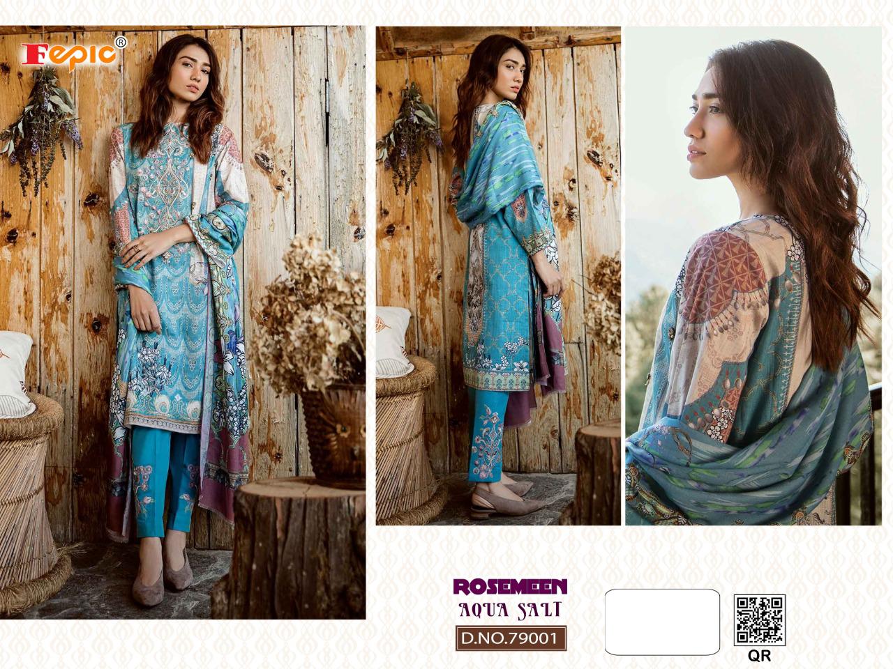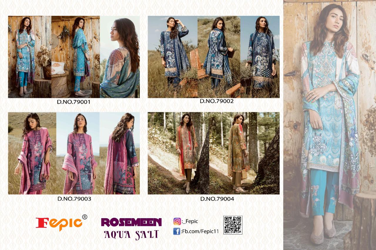 Fepic Launch Rosemeen Aqua Salt Cambric Cotton Pakistani Suit Concept