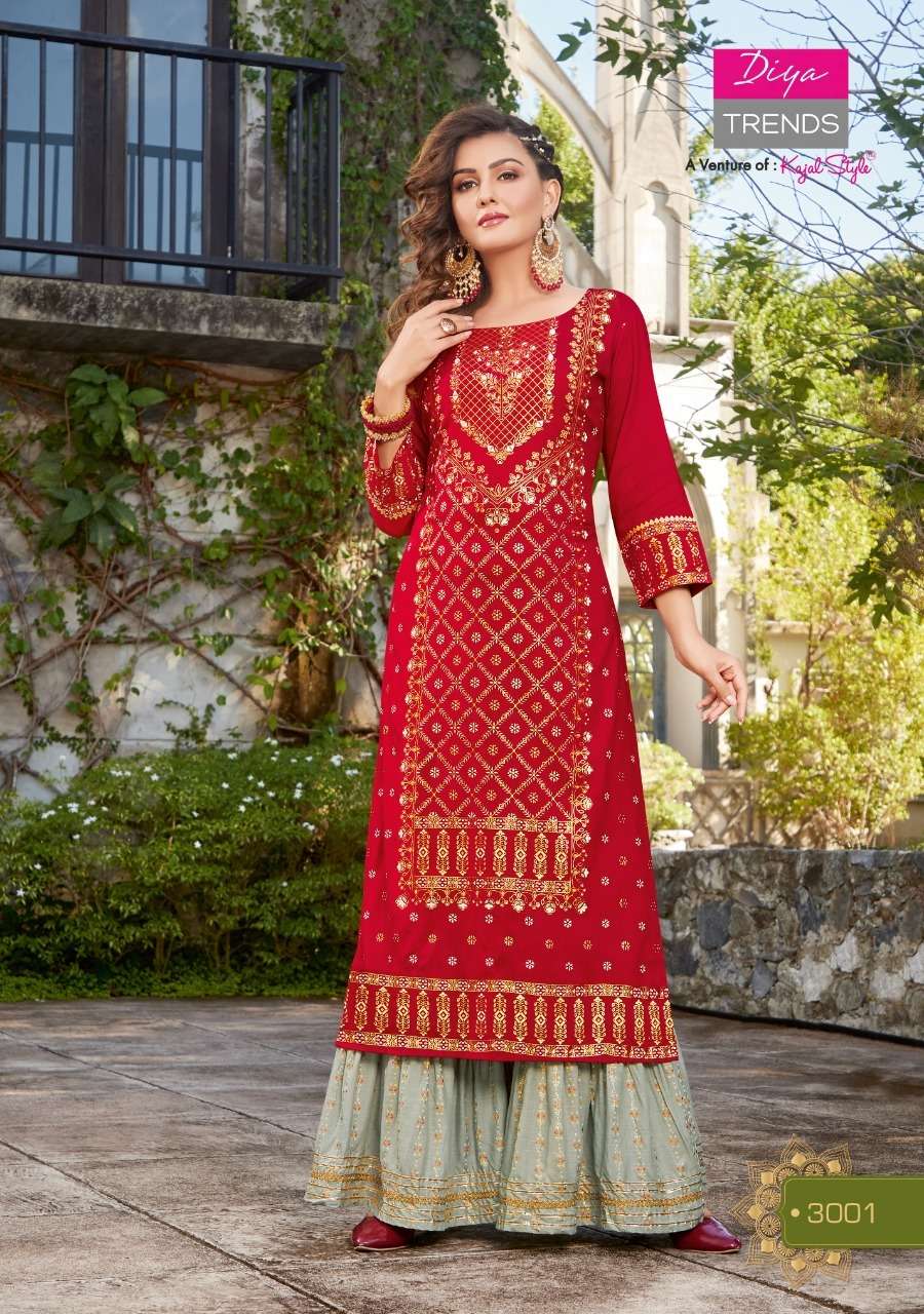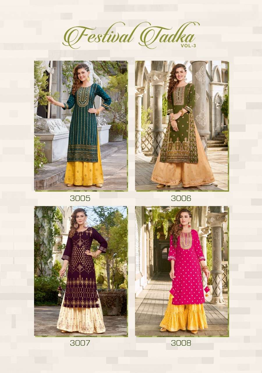 festival tadka vol 3 by diya trendz rayon designer kurti with sharara & plazzo