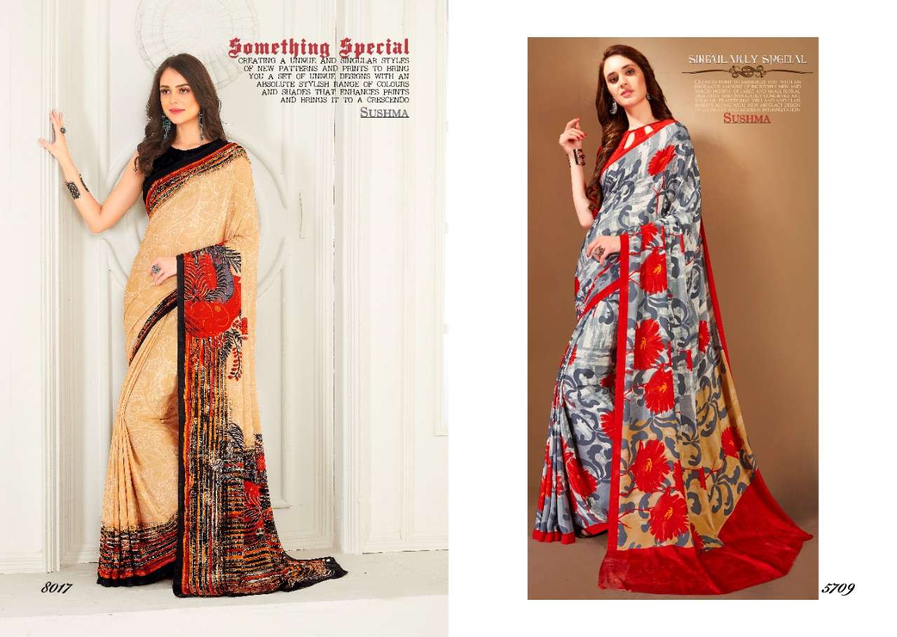 Brand - Sushma Flashy 3 catalogue Set crape Rate-575 per pcs Set to set Saree-13 6.30 mtrs |